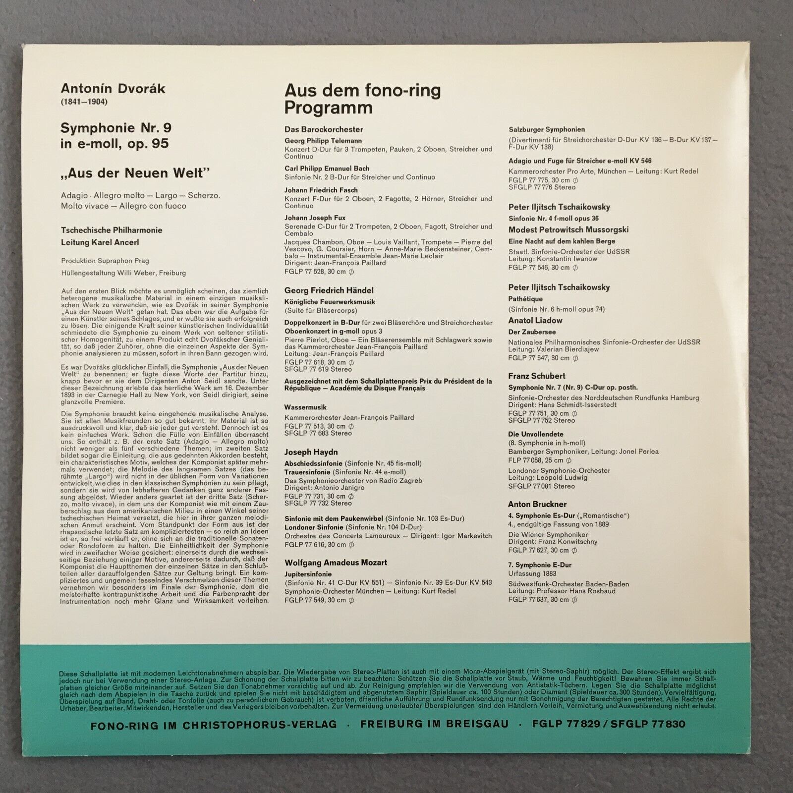 X929 Dvorak Symphony No.9 Ancerl Fono-Ring SFGLP 77 830 Stereo