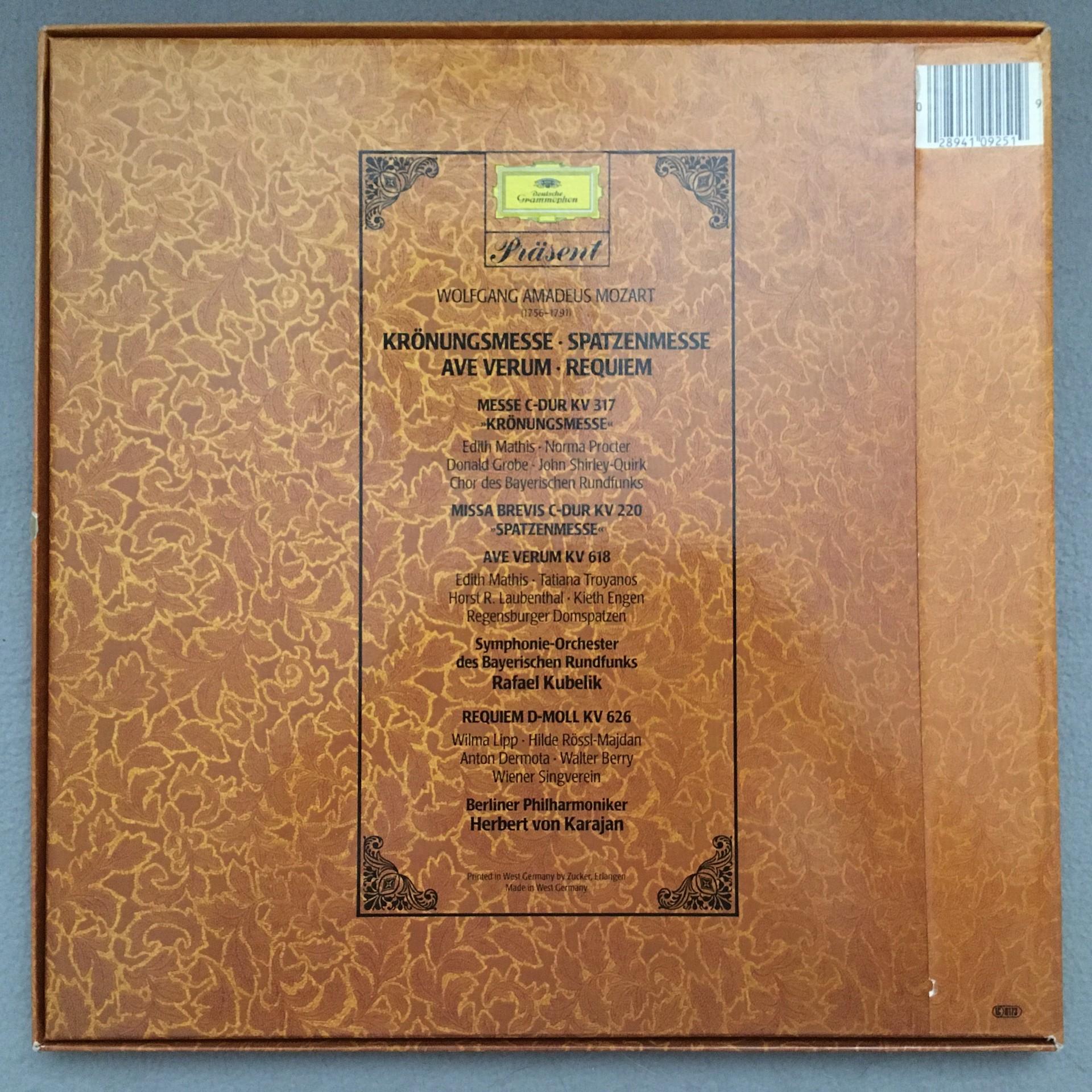 E354 Mozart Coronation Mass Requiem Karajan Kubelik 2LP DGG 410 925-1 Stereo