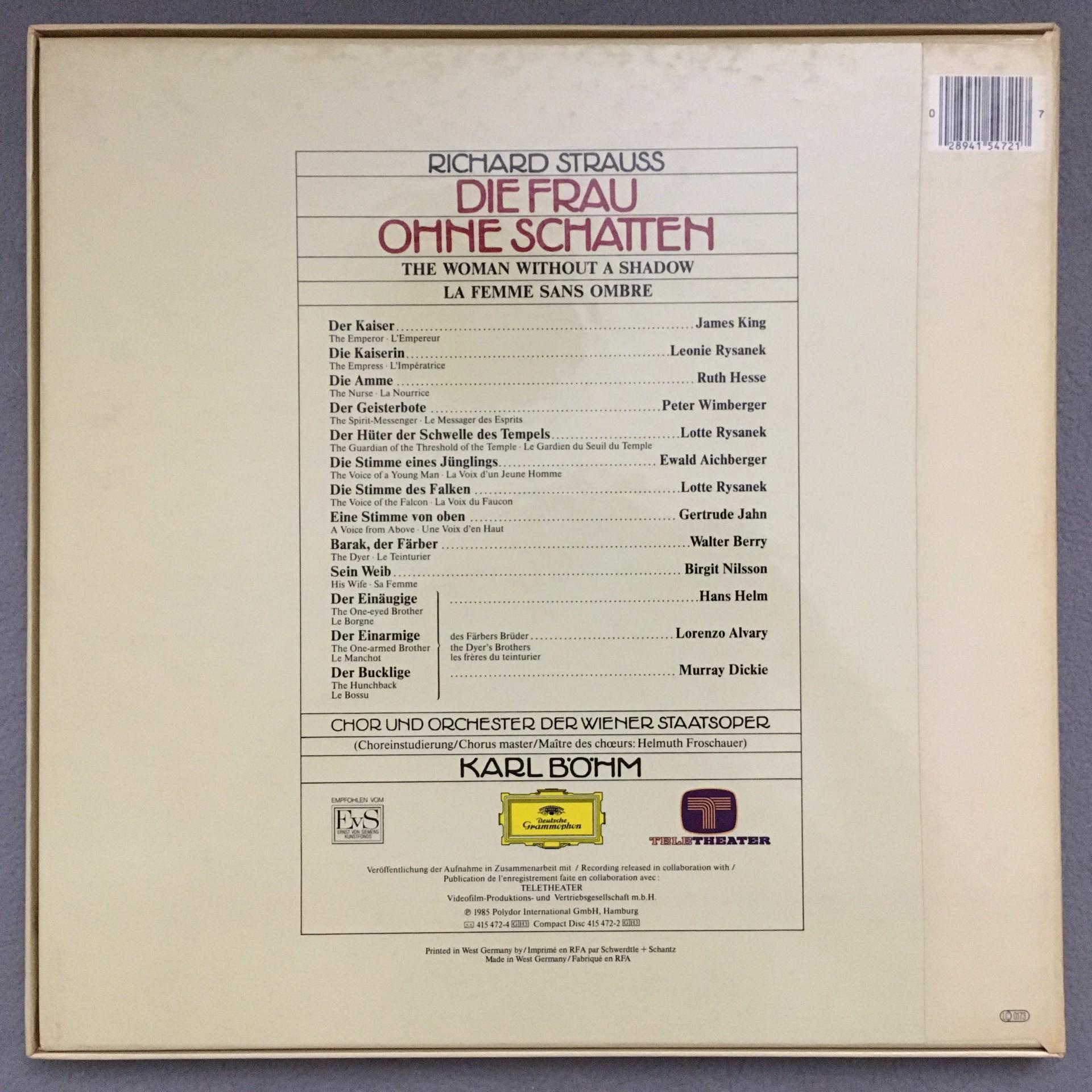 E357 R. Strauss Frau ohne Schatten Rysanek Bohm 3LP DGG 415 472-1 Stereo