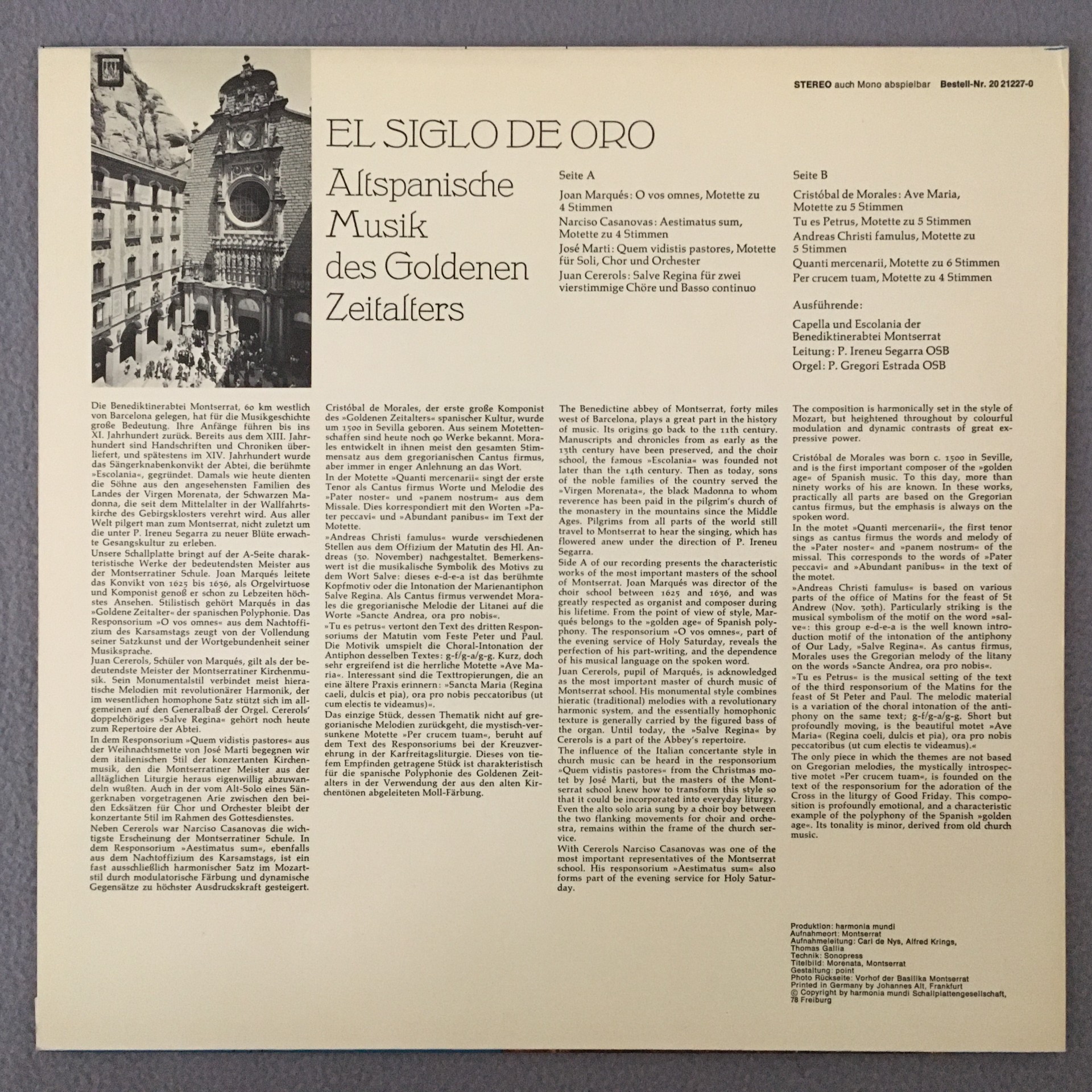 J407 El Siglo de Oro Spanish Music Estrada Organ HM BASF 10 21227-0 Stereo