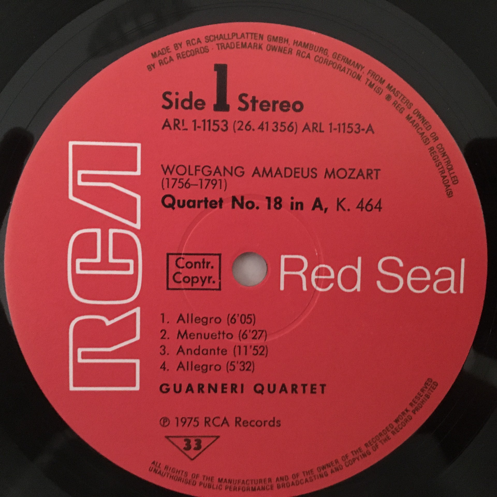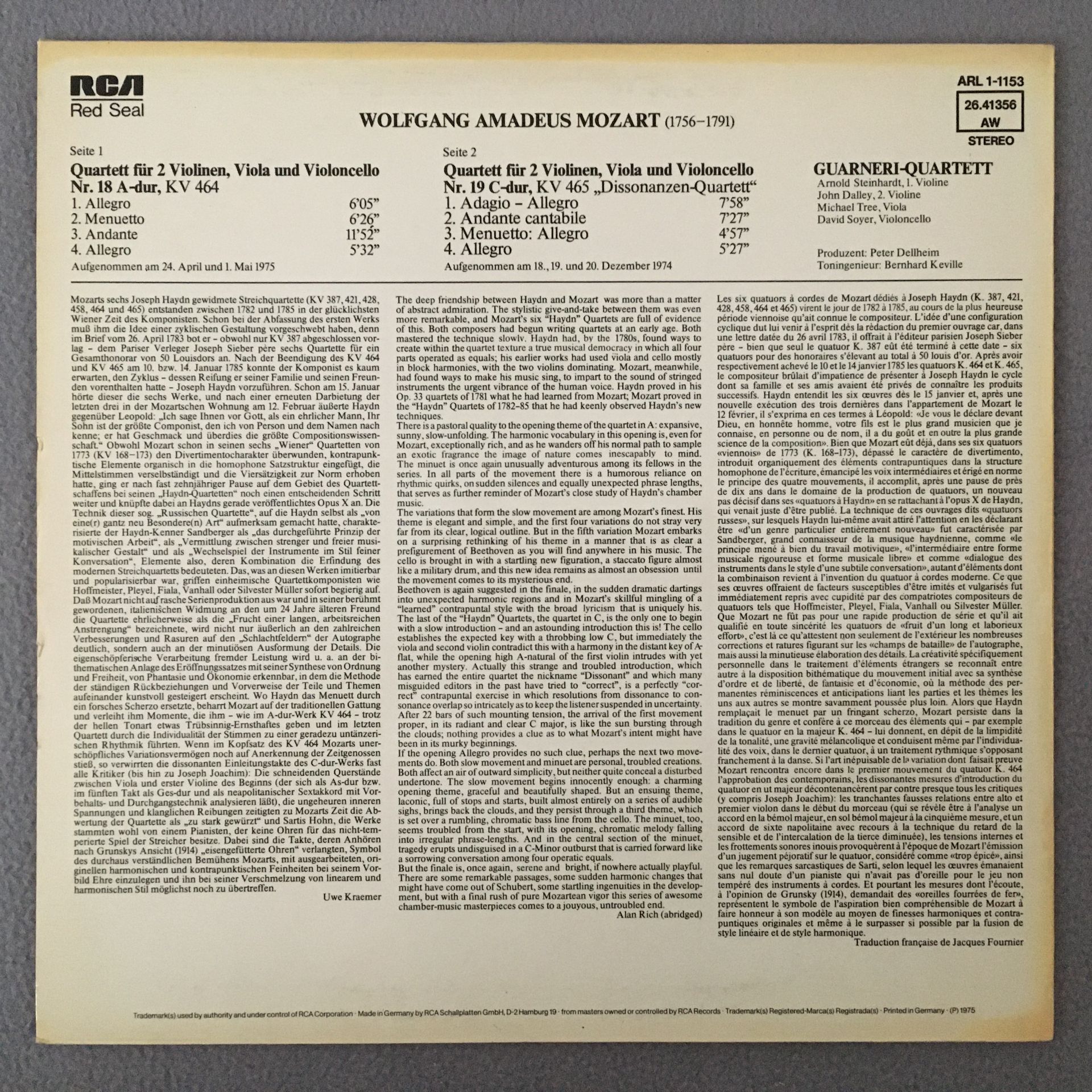 J412 Mozart String Quartets Guarneri Quartet RCA 26.41356 AW Stereo