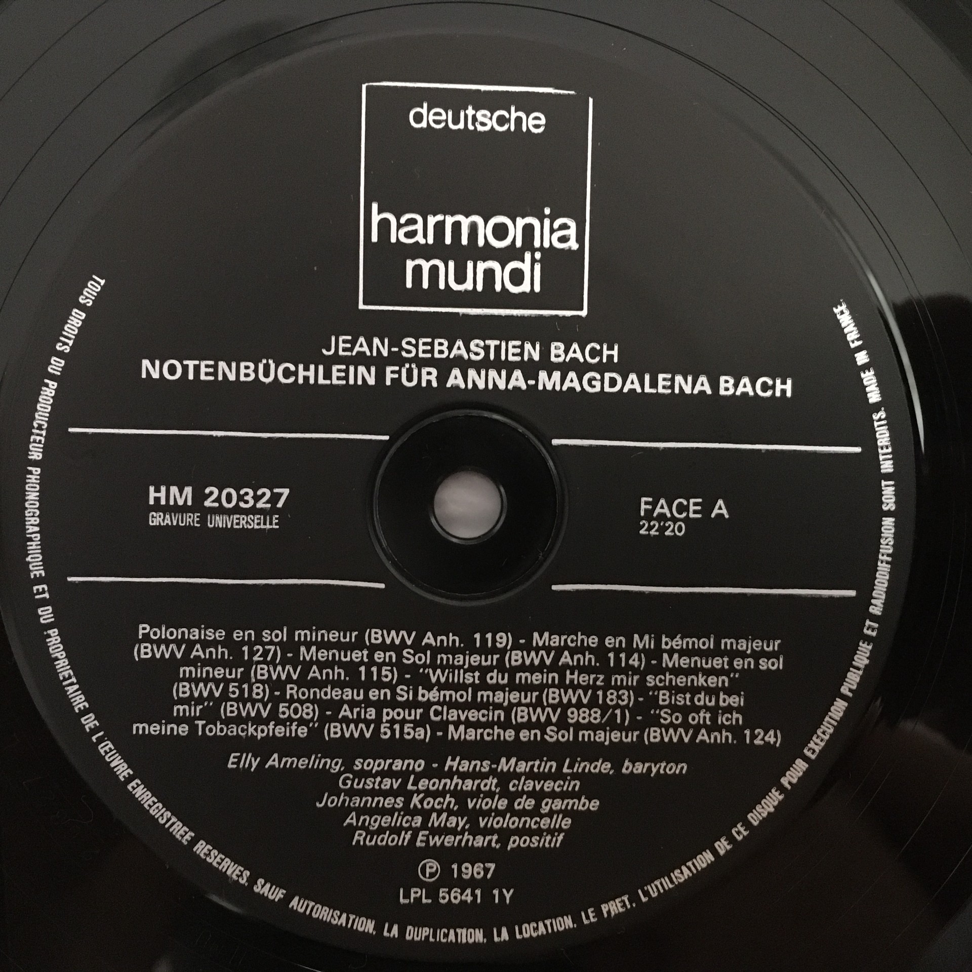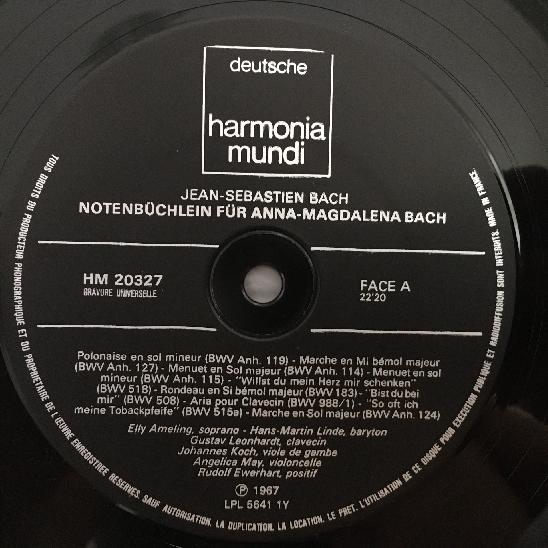 J422 Bach A.-M. Bach Ameling Leonhardt Linde Harmonia Mundi HM 20 327 Stereo