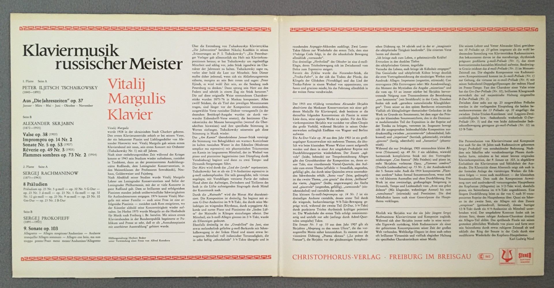 J424 Piano Music Tchaikovsky Skrjabin Margulis 2LP ChristophorusSCK 70 347 Ster