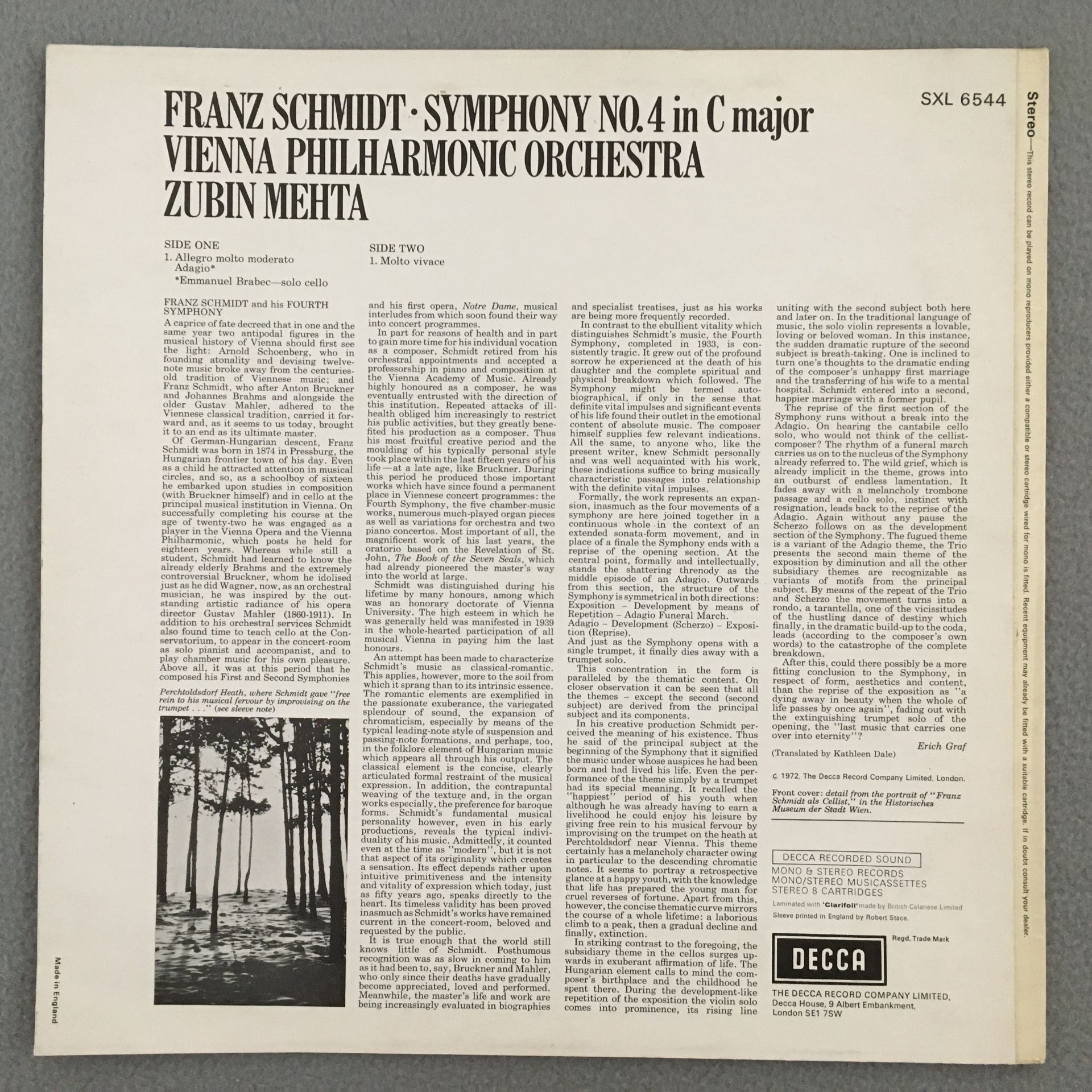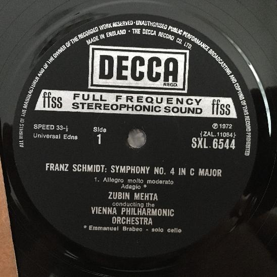 J427 Schmidt Symphony No.4 Mehta DECCA SXL 6544 Stereo