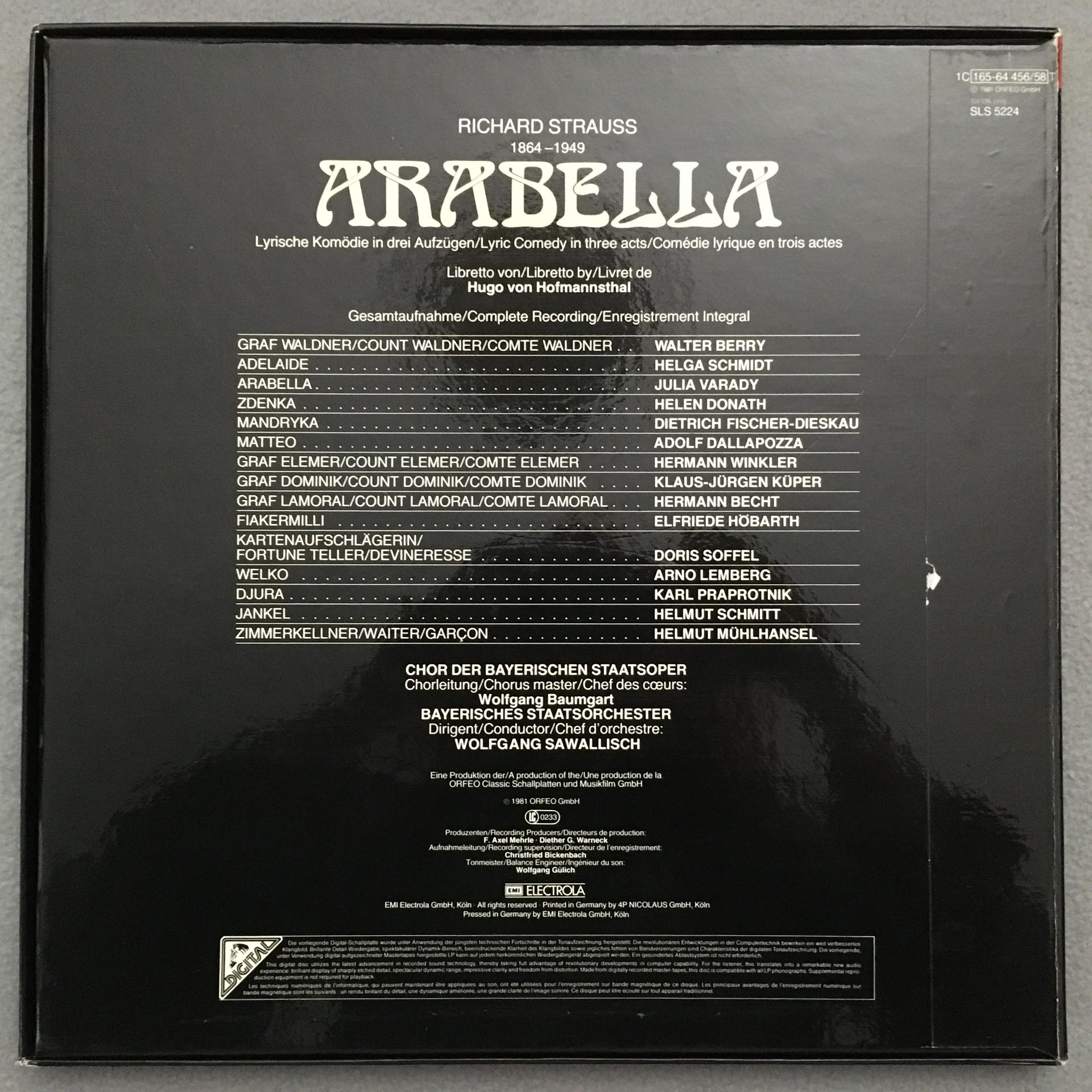 E376 R. Strauss Arabella Varady Sawallisch 3LP EMI 1C 165-64 456/58 T Digital St