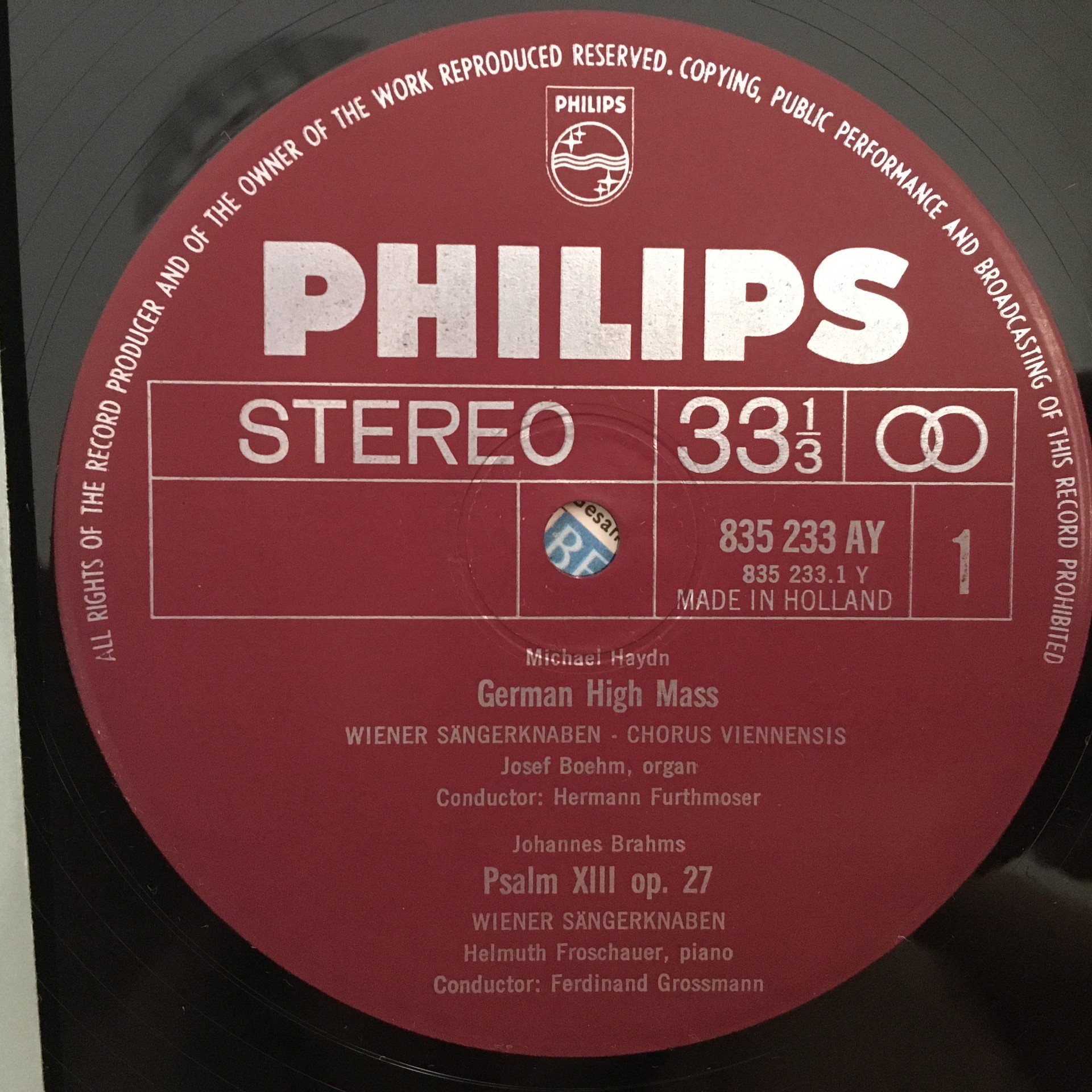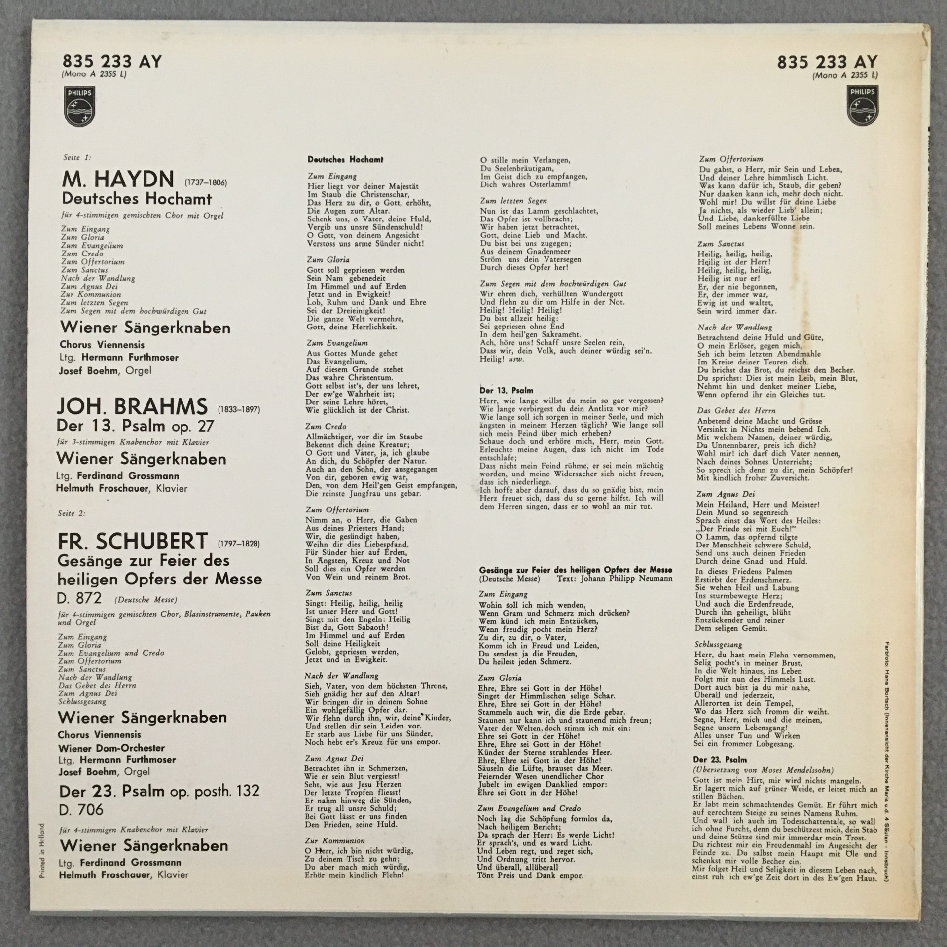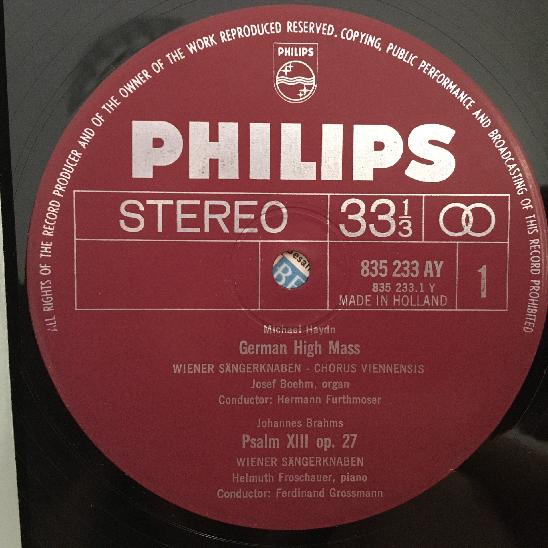 J431 Schubert Mass Brahms Psalm Vienna Boy´s Choir Philips 835 233 AY Stereo