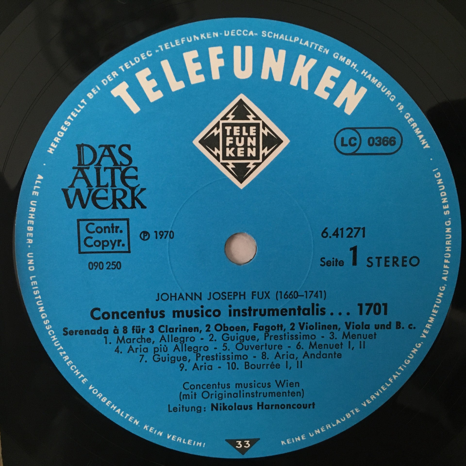 J439 Fux Serenade Sonata Rondo Harnoncourt Telefunken 6.41271 AW Stereo
