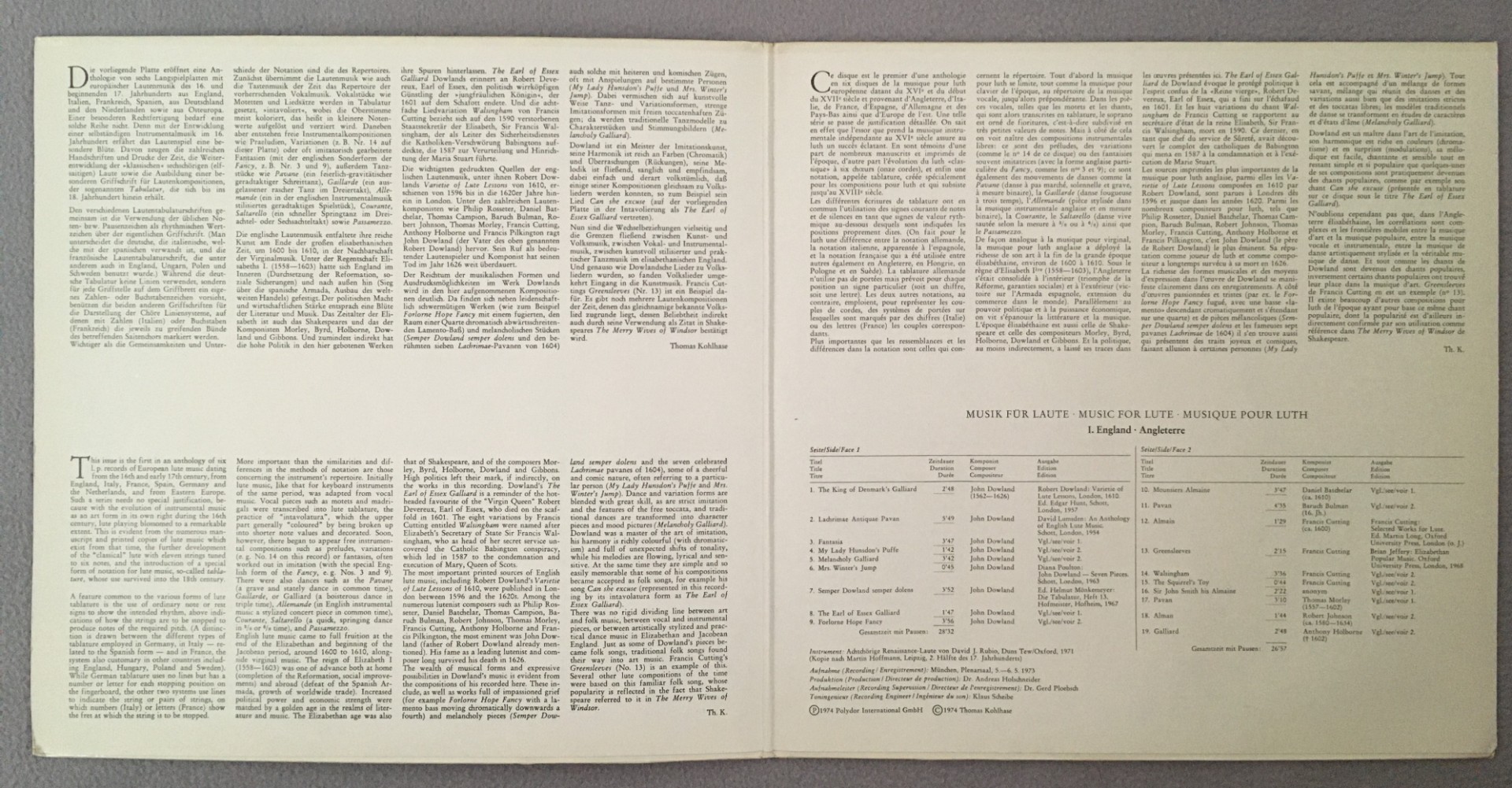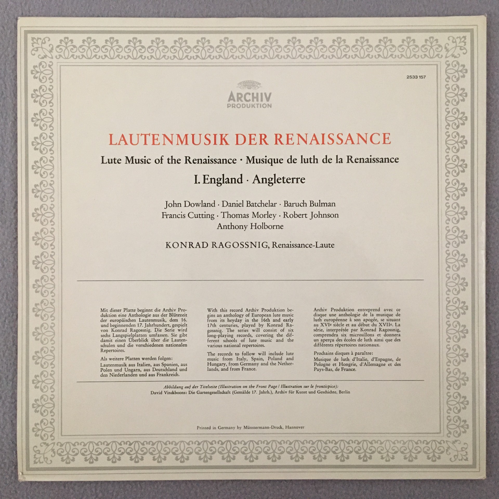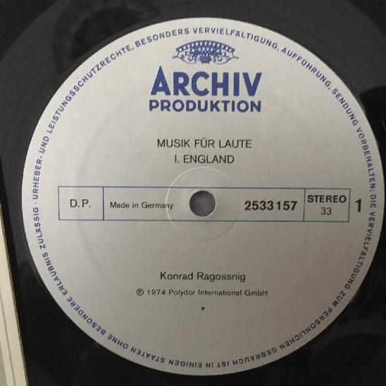 J447 Music for Lute Ragossnig England Archiv DGG 2533 157 Stereo
