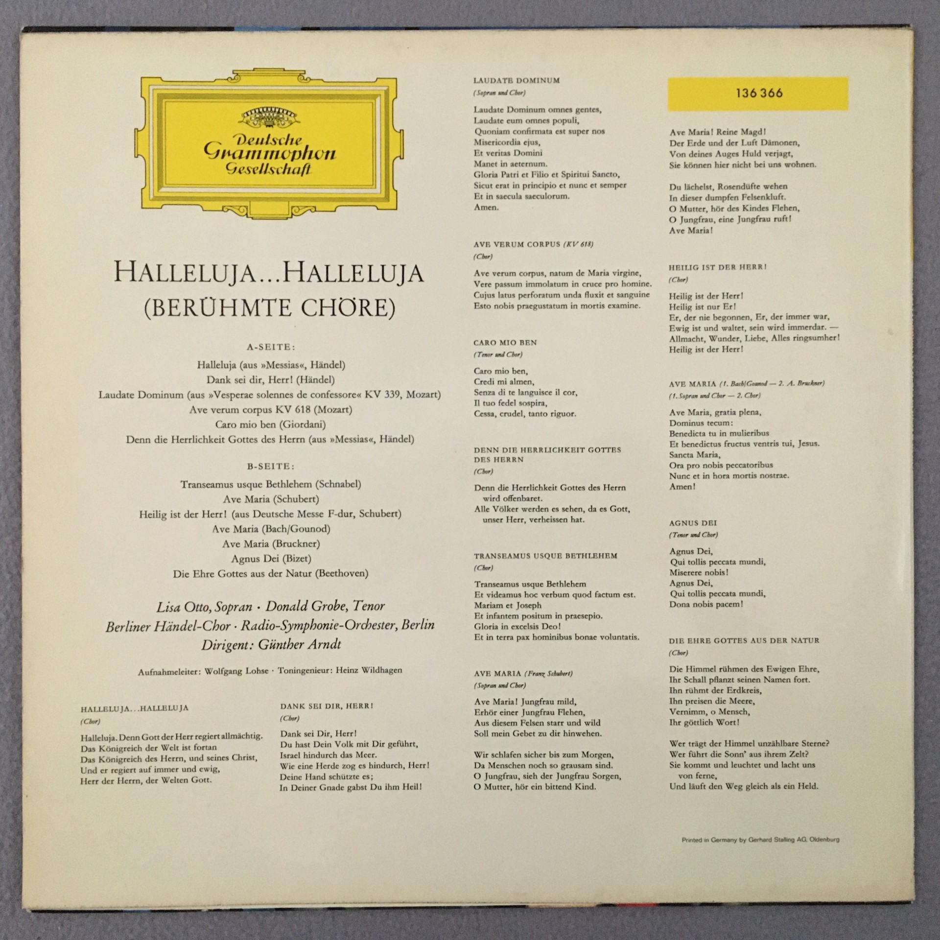 J453 Halleluja Halleluja Famous Choirs Handel Mozart Bach DGG 136 366 Stereo