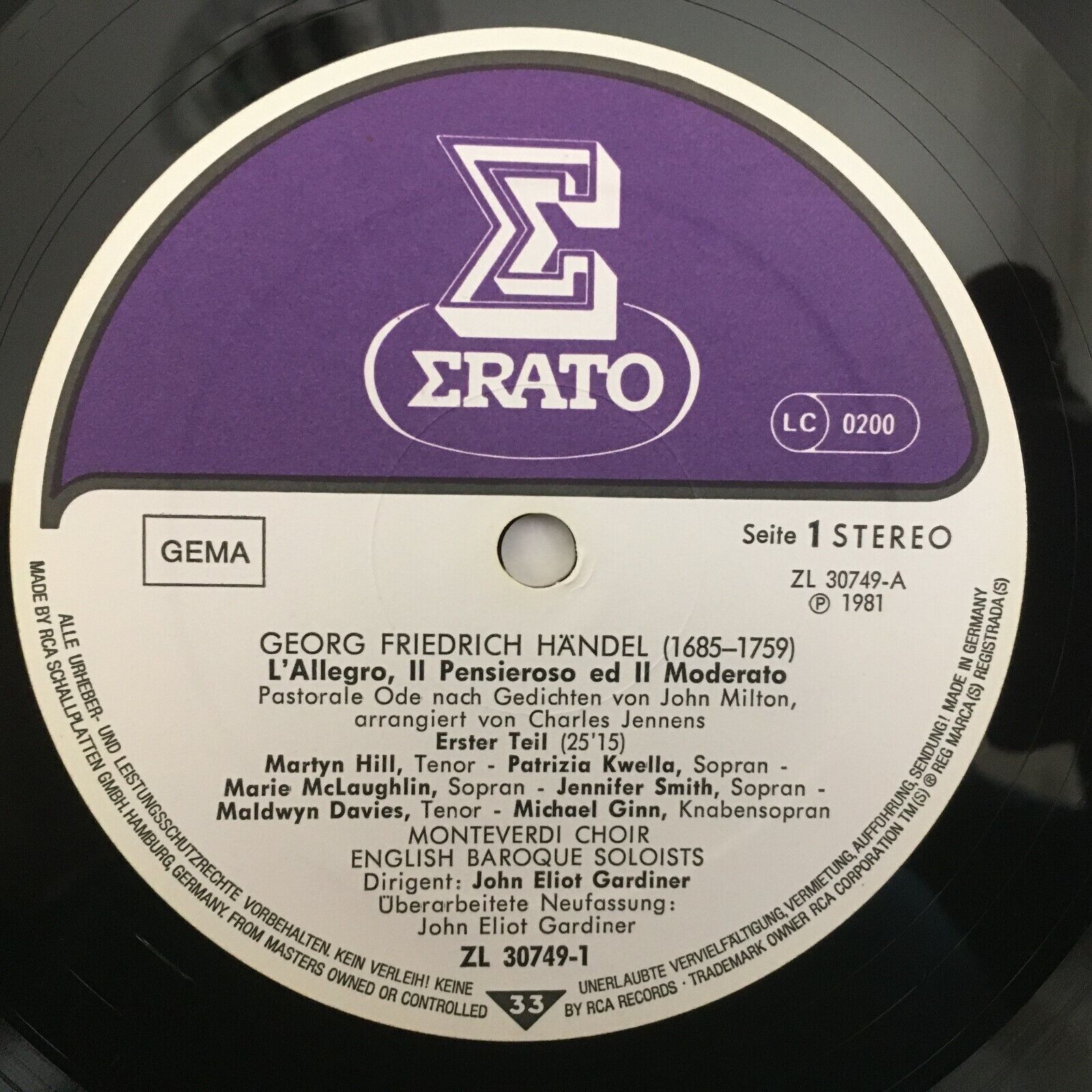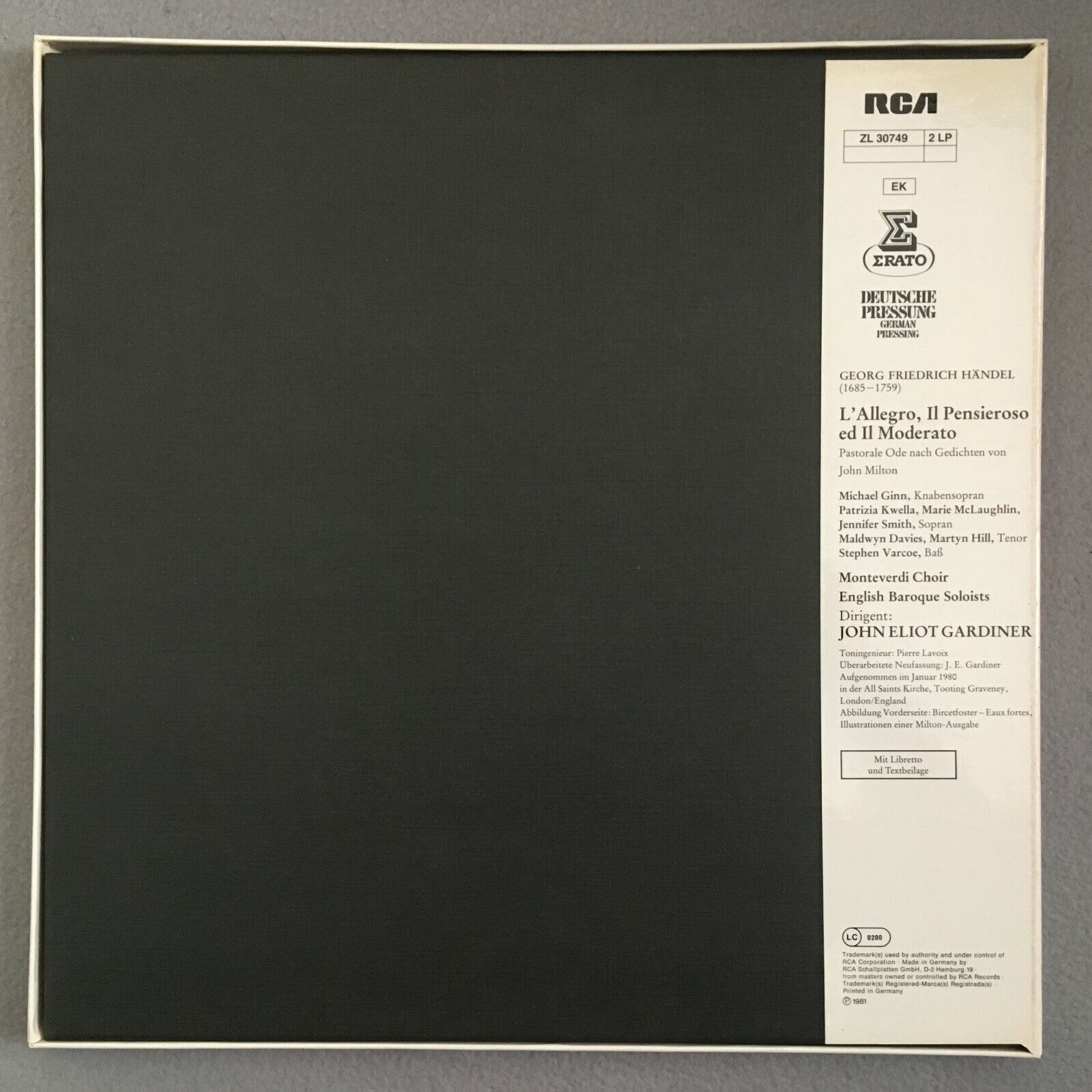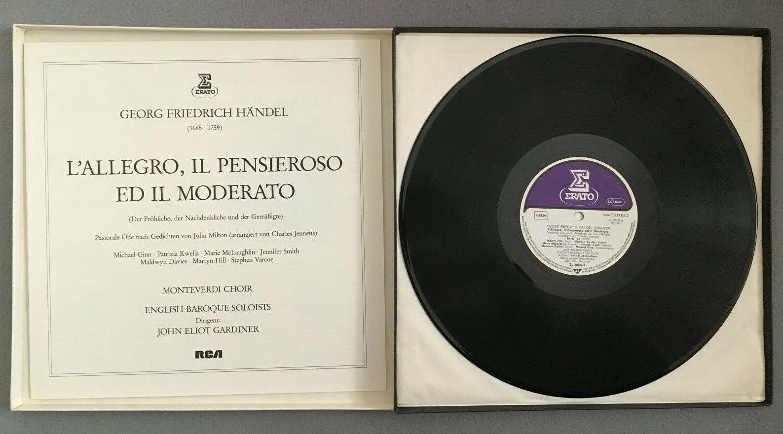 B111 Handel Allegro Pensieroso Moderato Gardiner 2LP RCA Erato ZL 30749 Stereo