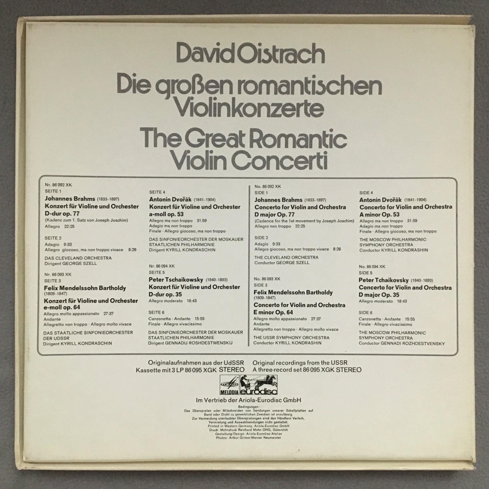 E380 Great Romantic Violin Concertos Oistrakh 3LP Eurodisc 86 095 XGK Stereo