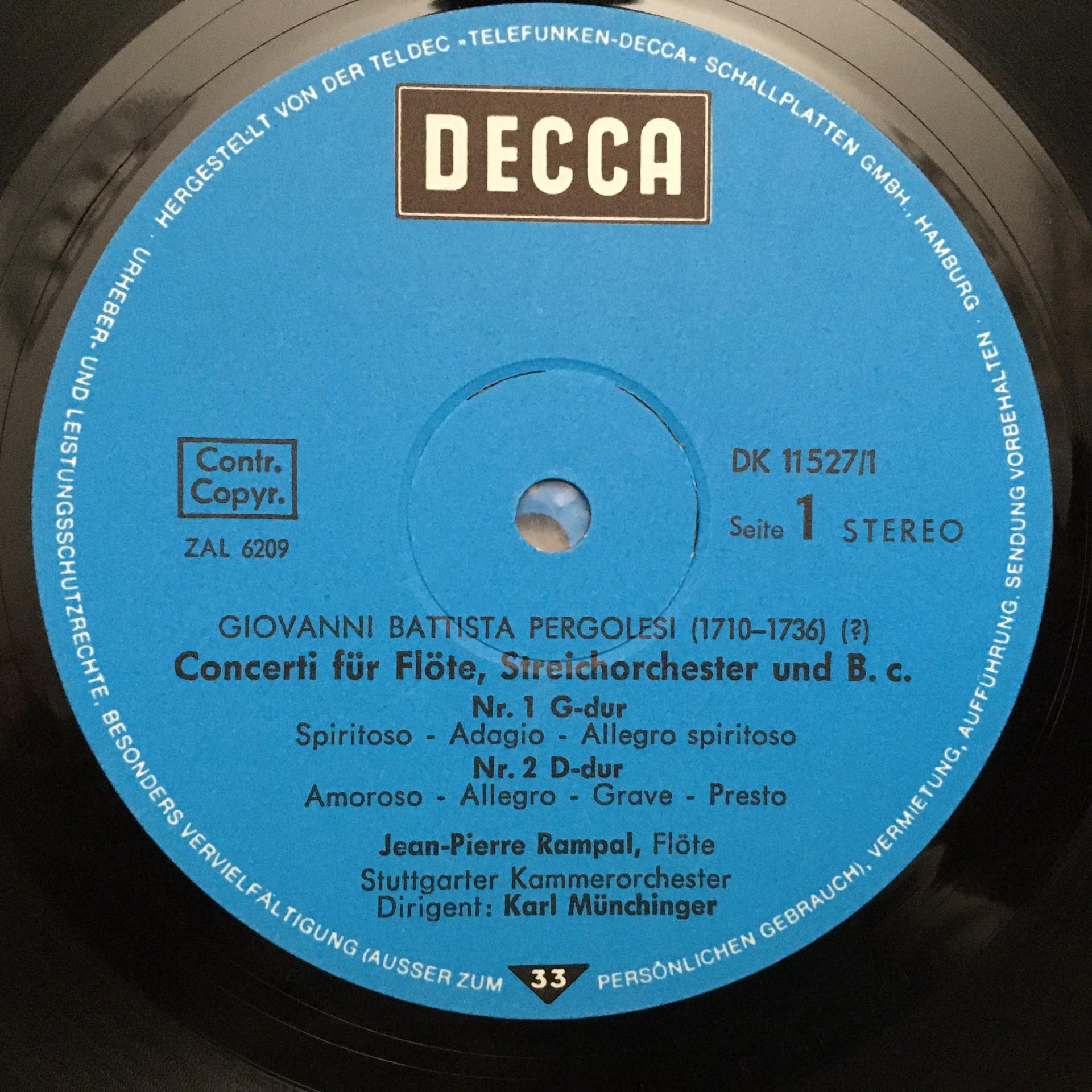 E382 Pergolesi Flute Concertos Rampal Munchinger 2LP DECCA DK 11 527/1-2 Stereo