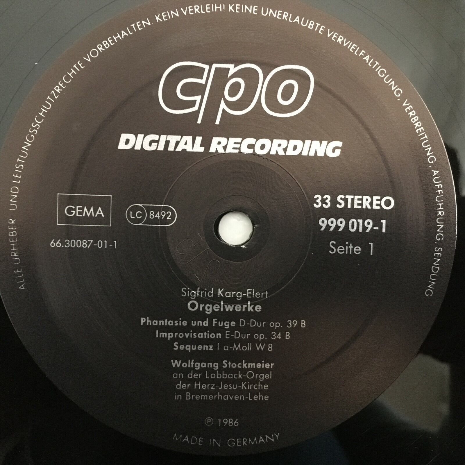 B139 Harg-Elert Organ Works Stockmeier 6LP CPO 999 019-1 Digital Stereo