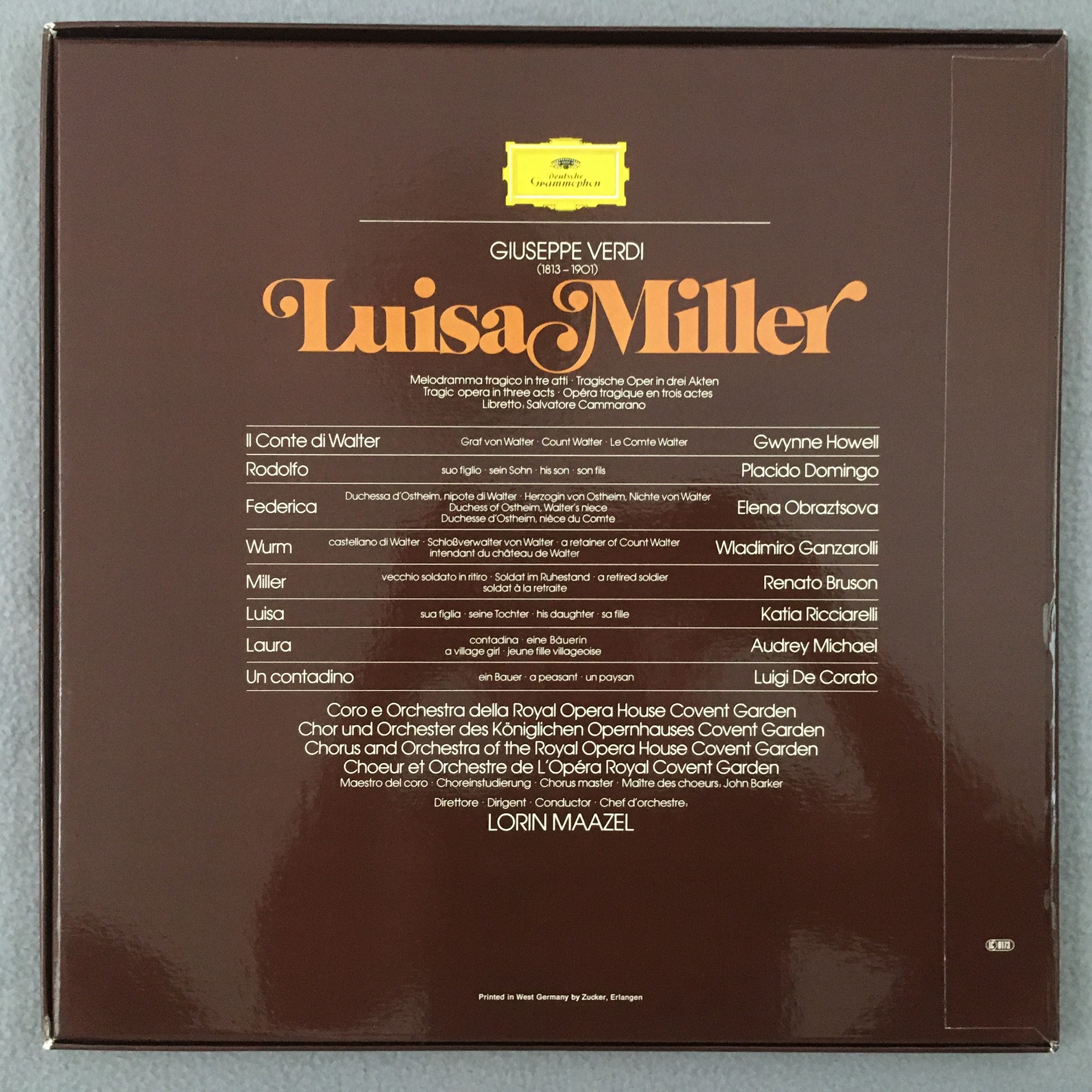 C603 Verdi Luisa Miller Ricciarelli Domingo Maazel 3LP DGG 2709 096 Stereo