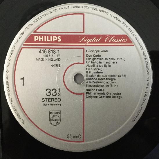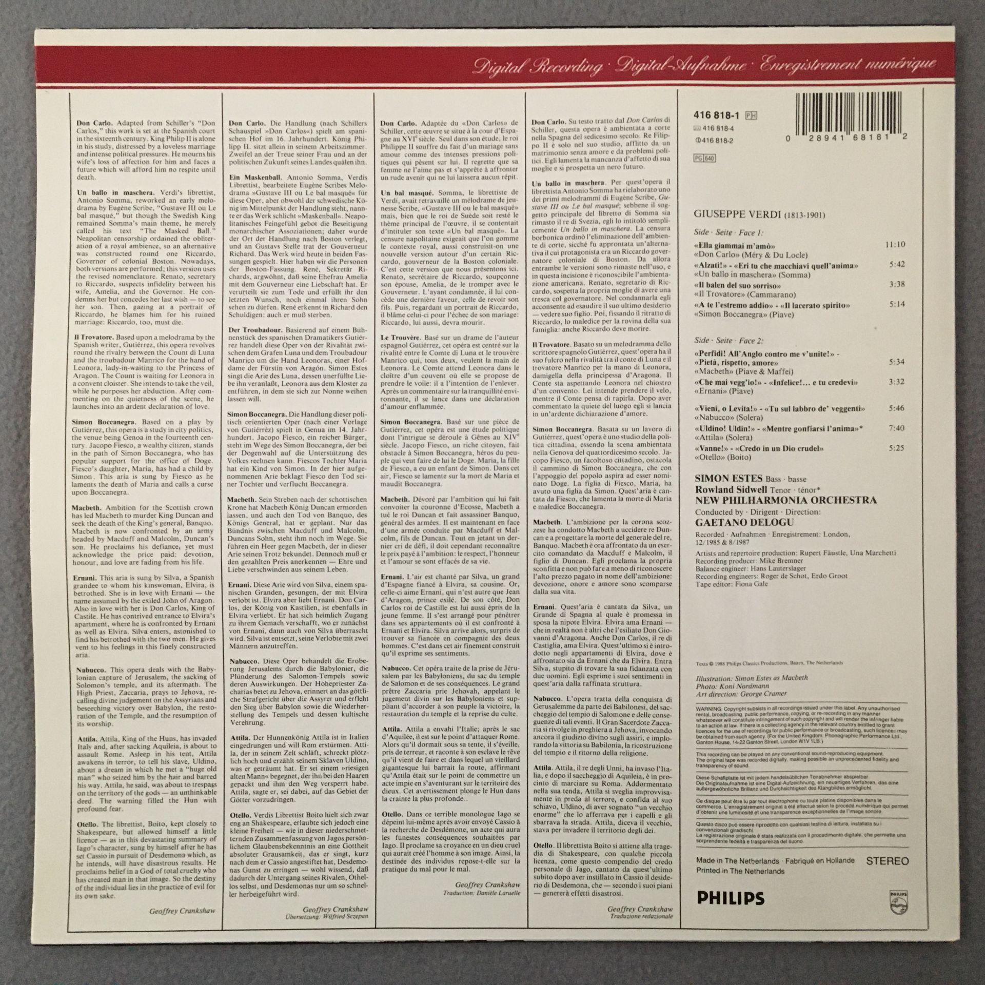 L766 Verdi Arias Estes Delogu Philips 416 818-1 Stereo