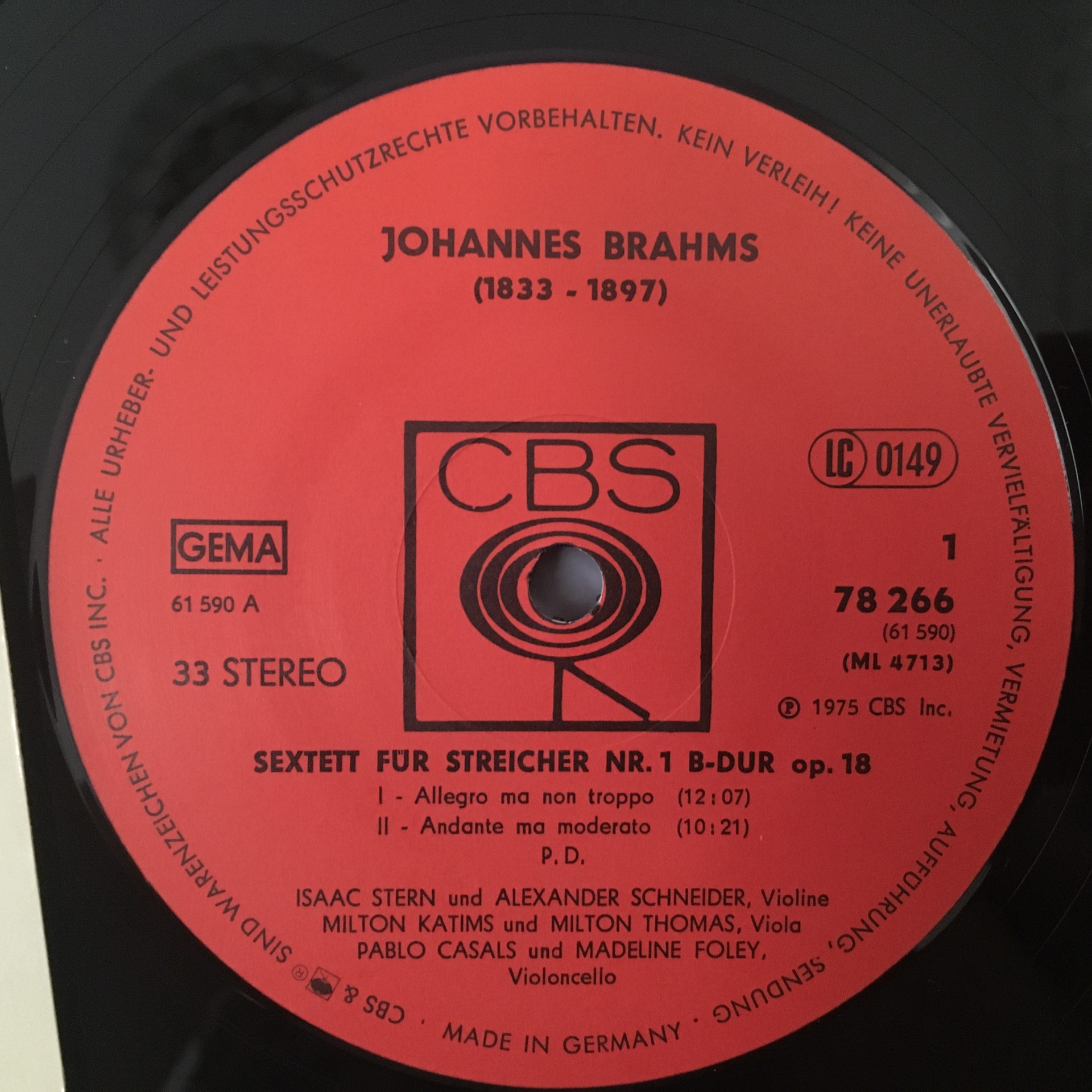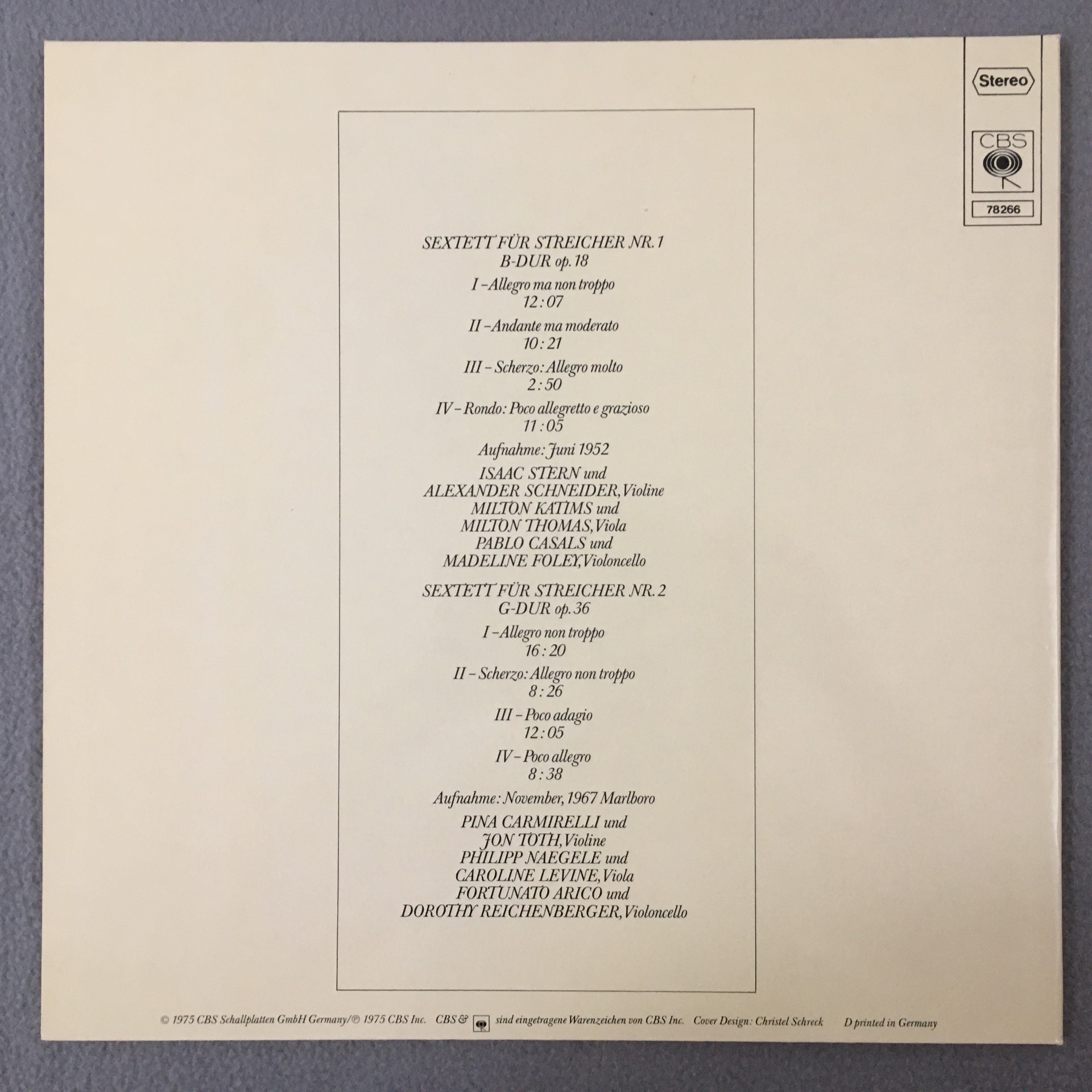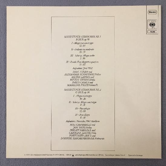 J475 Brahms String Sextets Stern Schneider Casals 2LP CBS 78 266 Stereo