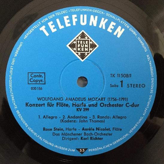 D363 Nicolet Flute Concertos Mozart Richter 2LP Telefunken 6.35051 DX Stereo