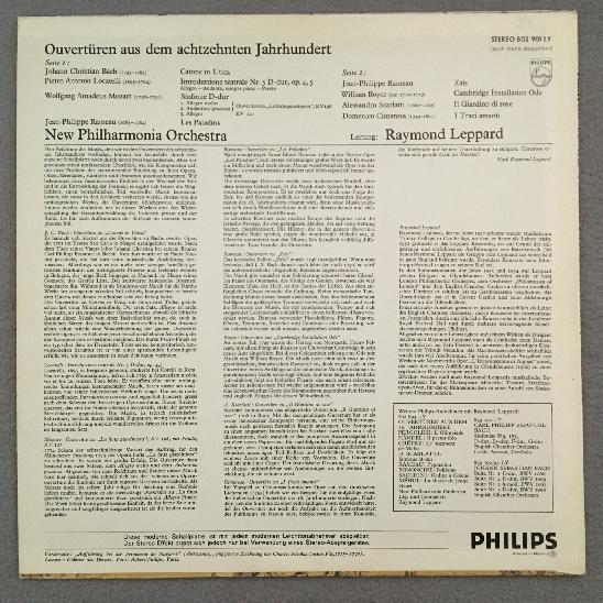 J488 Overtures from 18th Century Bach Mozart Leppard Philips 802 901 LY Stereo