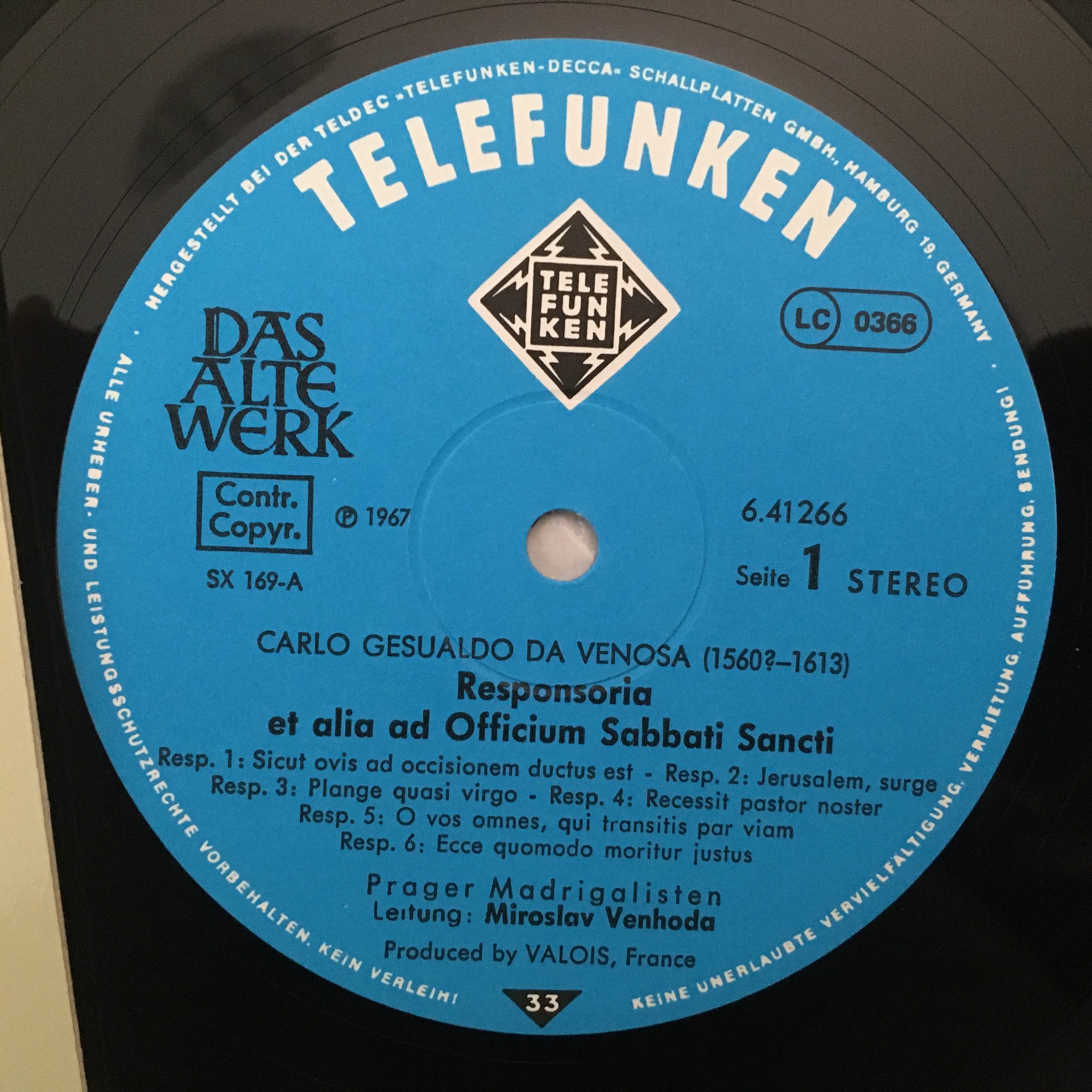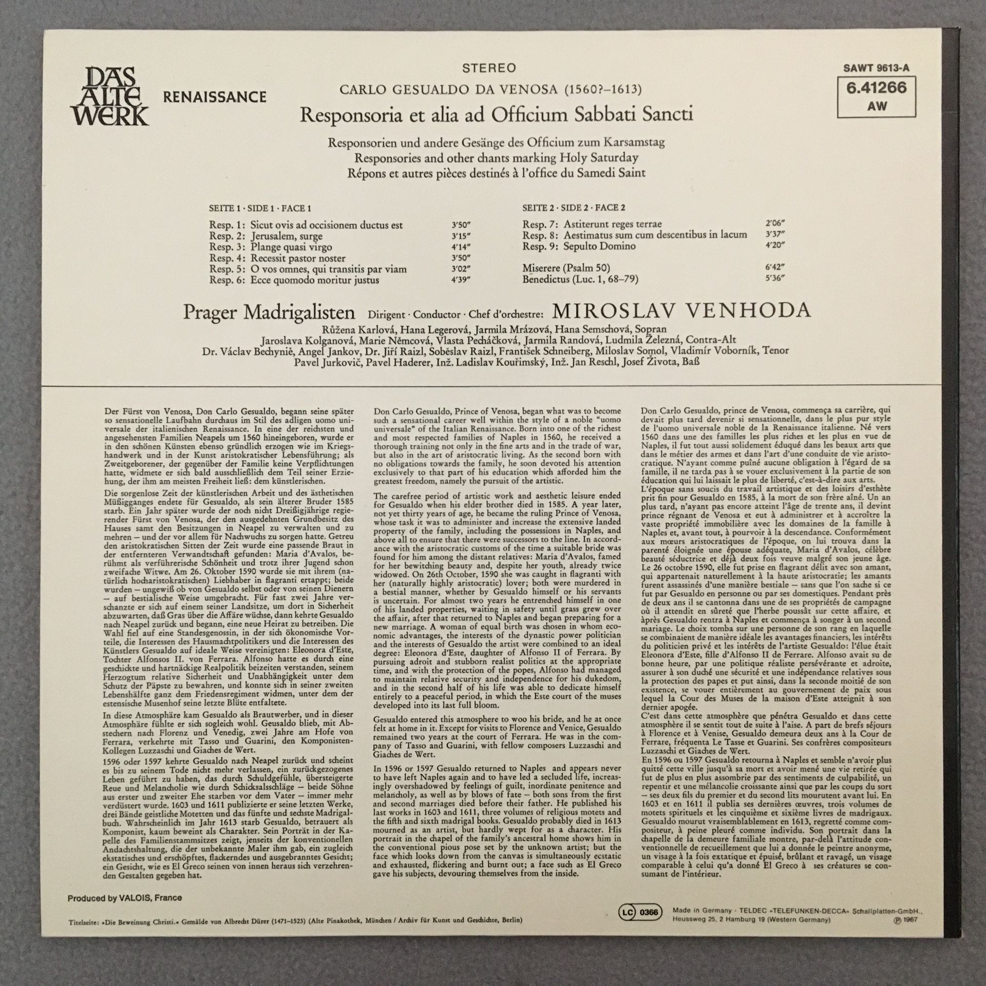 J504 Gesualdo Responsorien 1611 Venhoda Telefunken 6.41266 AW Stereo