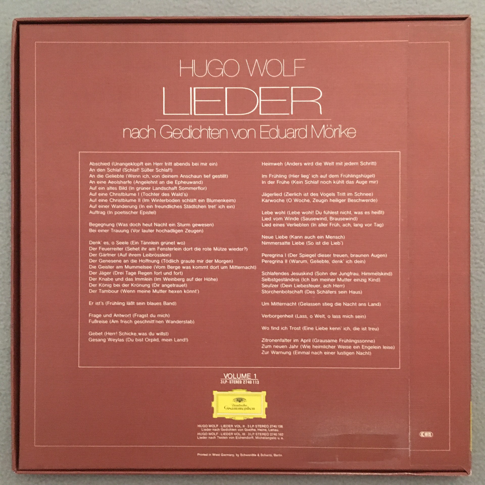 C612 Hugo Wolf Songs Vol.1 Fischer-Dieskau Barenboim 3LP DGG 2740 113 Stereo