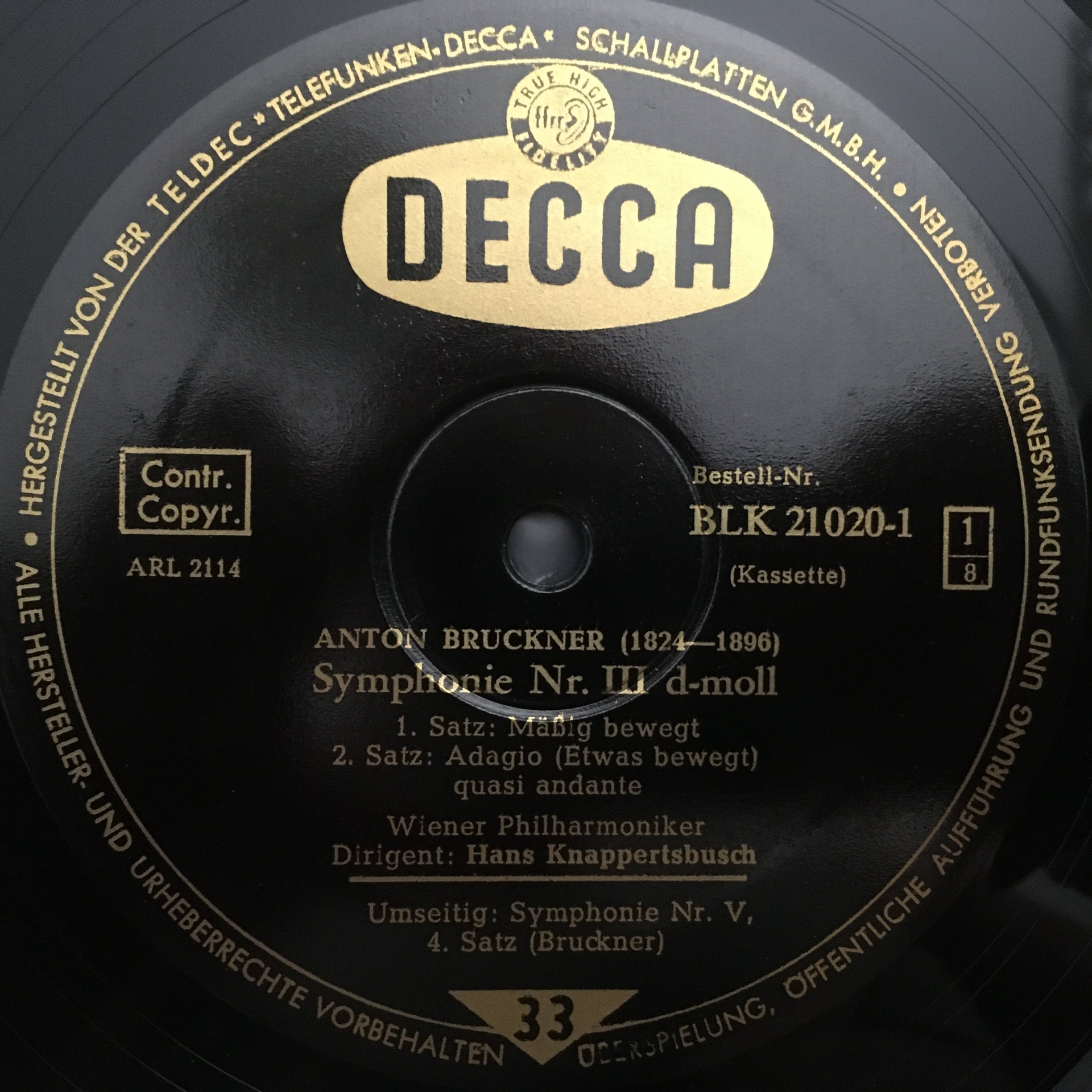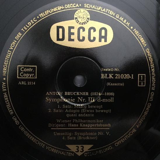 C613 Bruckner Symphonies No.3, 4 & 5 Knappertsbusch 4LP DECCA BLK 21 020/1-4