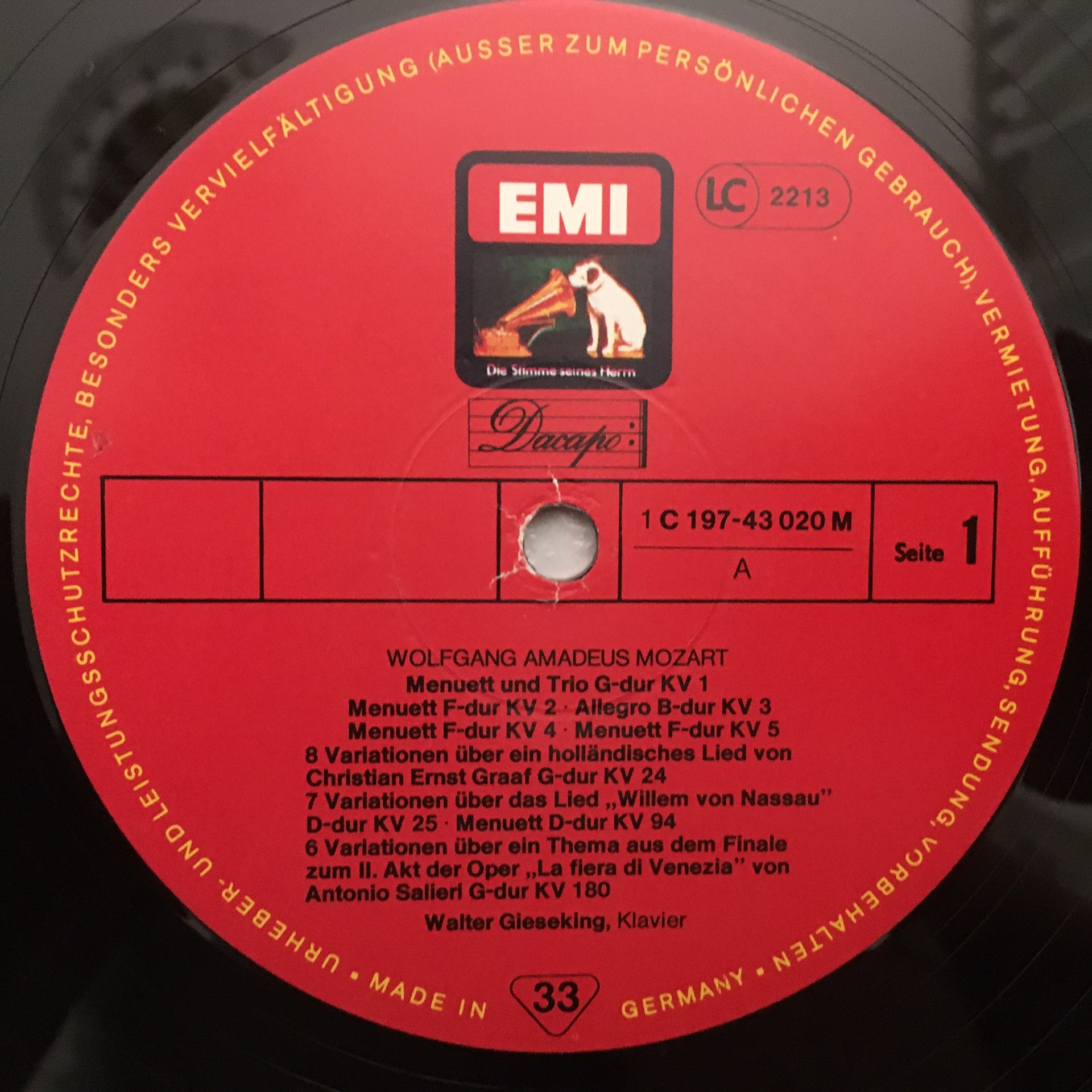C614 Mozart Piano Pieces Gieseking 5LP EMI 1C 197-43 020/24 M