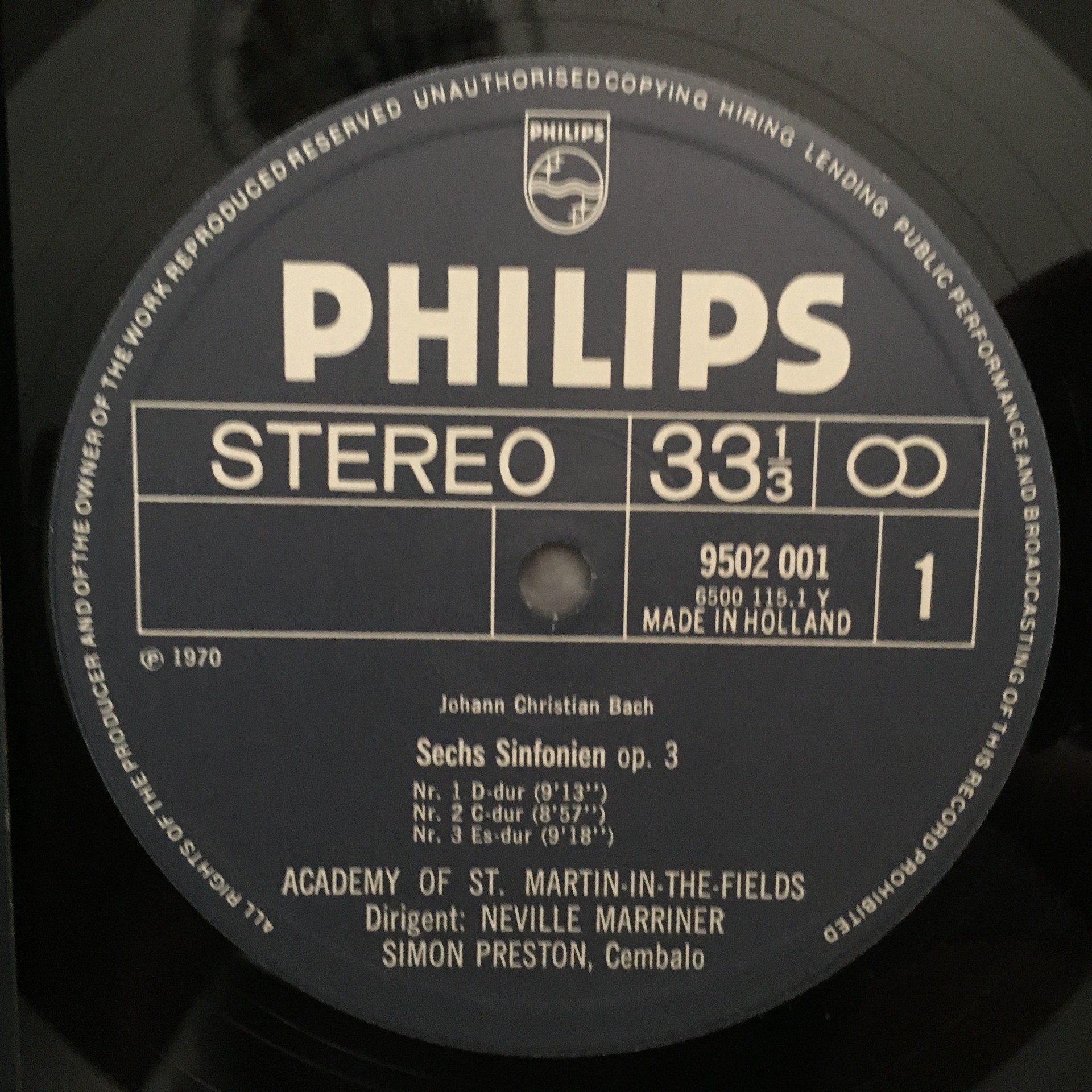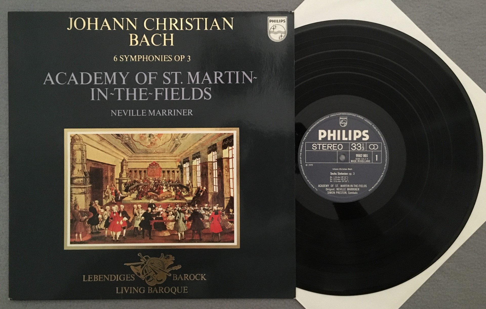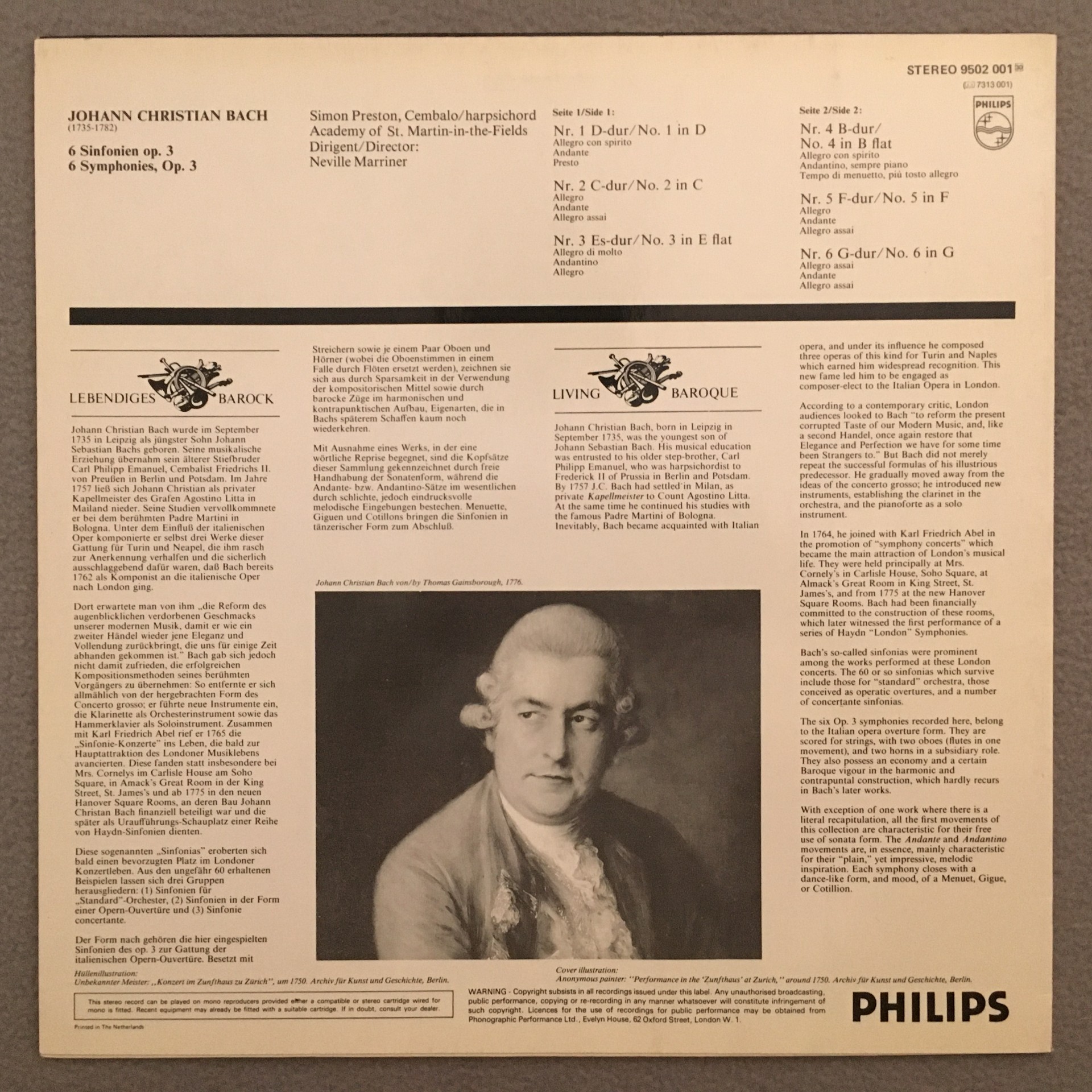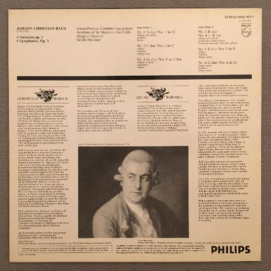 J521 J.C. Bach 6 Symphonies Preston Harpsichord Marriner Philips 9502 001 Stereo