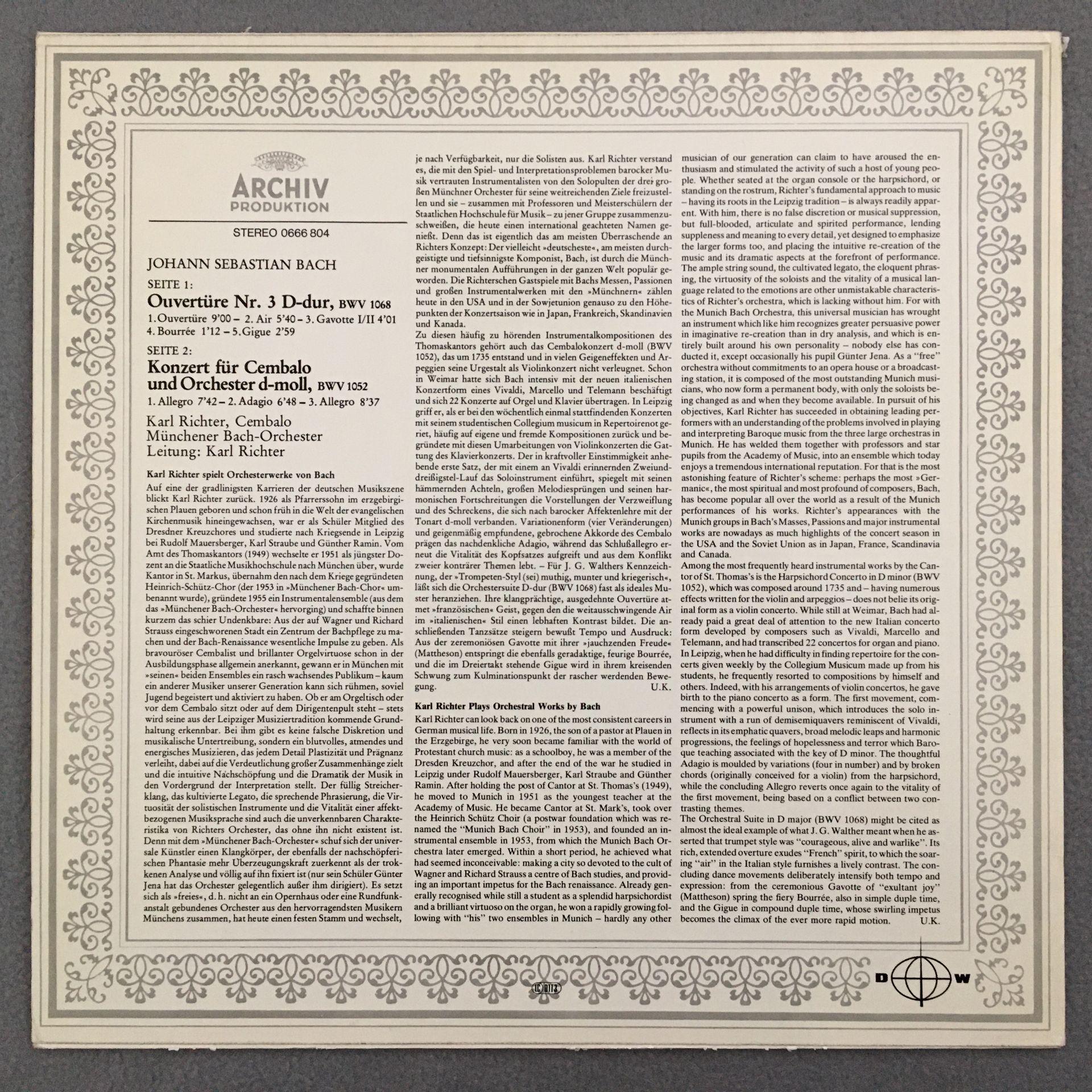 T791 Bach Overture No.3 Concerto Richter DGG Archiv 0666 804 Stereo