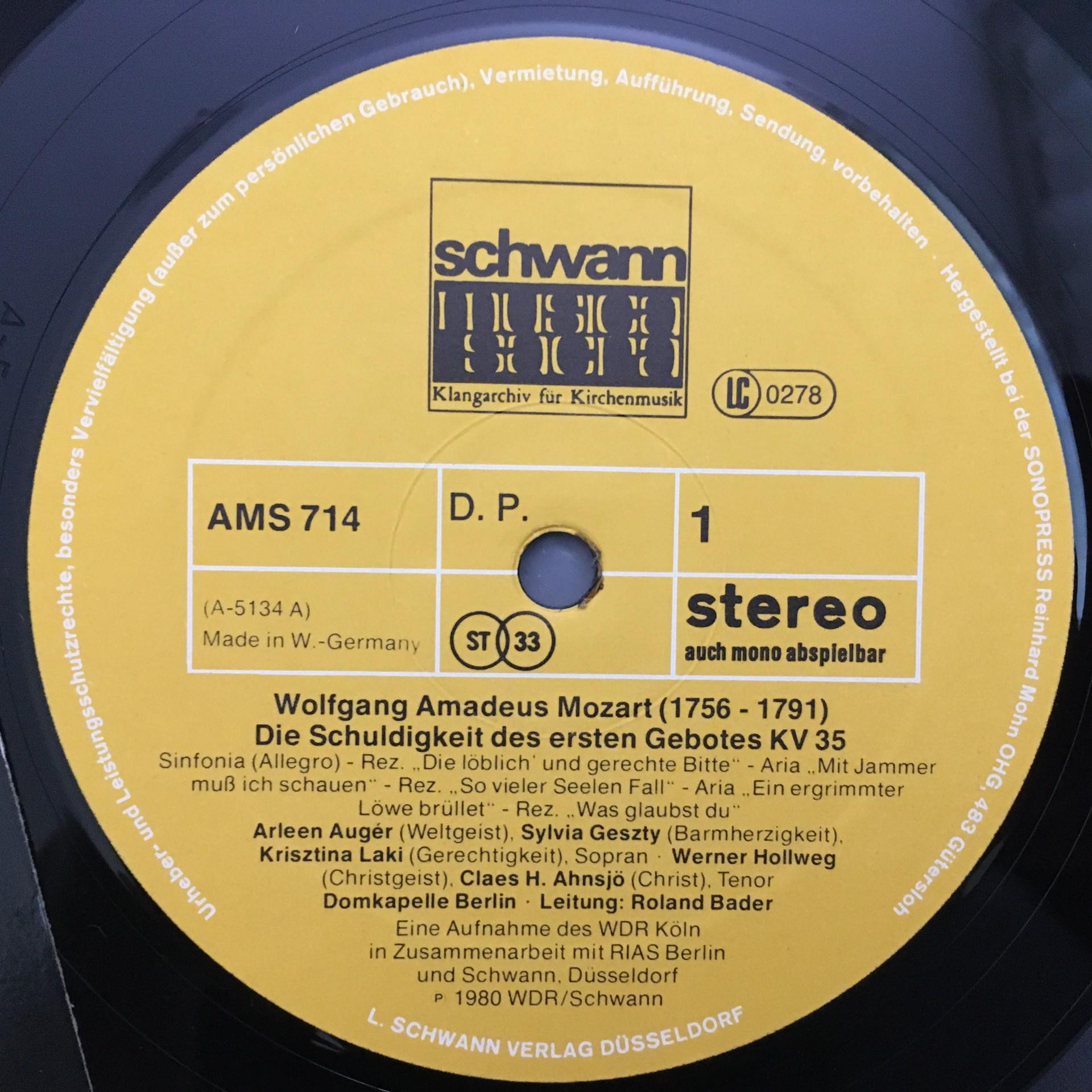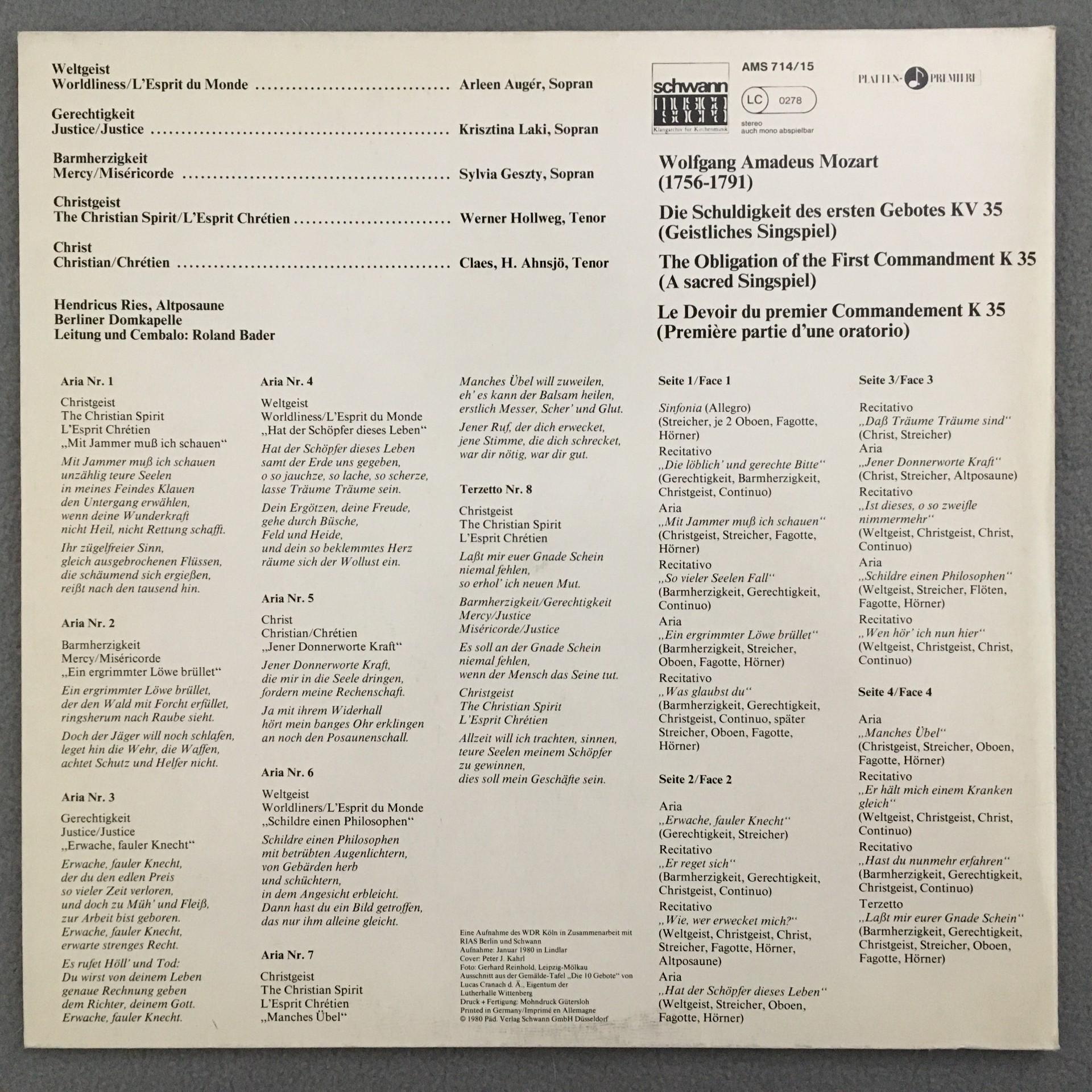 T799 Mozart A Sacred Singspiel Auger Bader 2LP Schwann AMS 714/15 Stereo