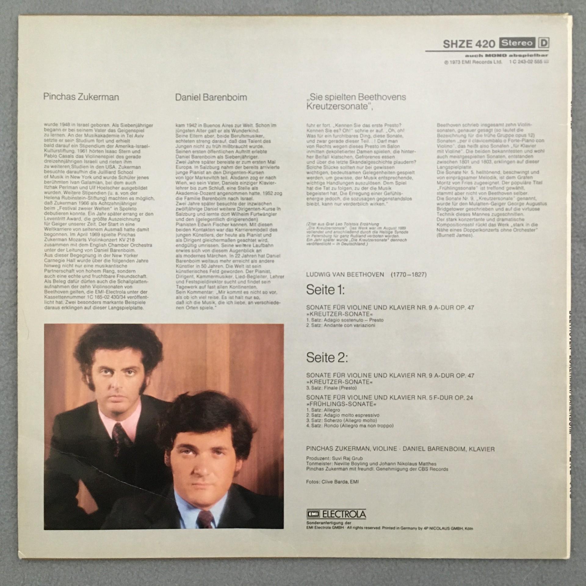 T803 Beethoven Kreutzer and Spring Sonata Zukerman Barenboim EMI SHZE 420 Stereo