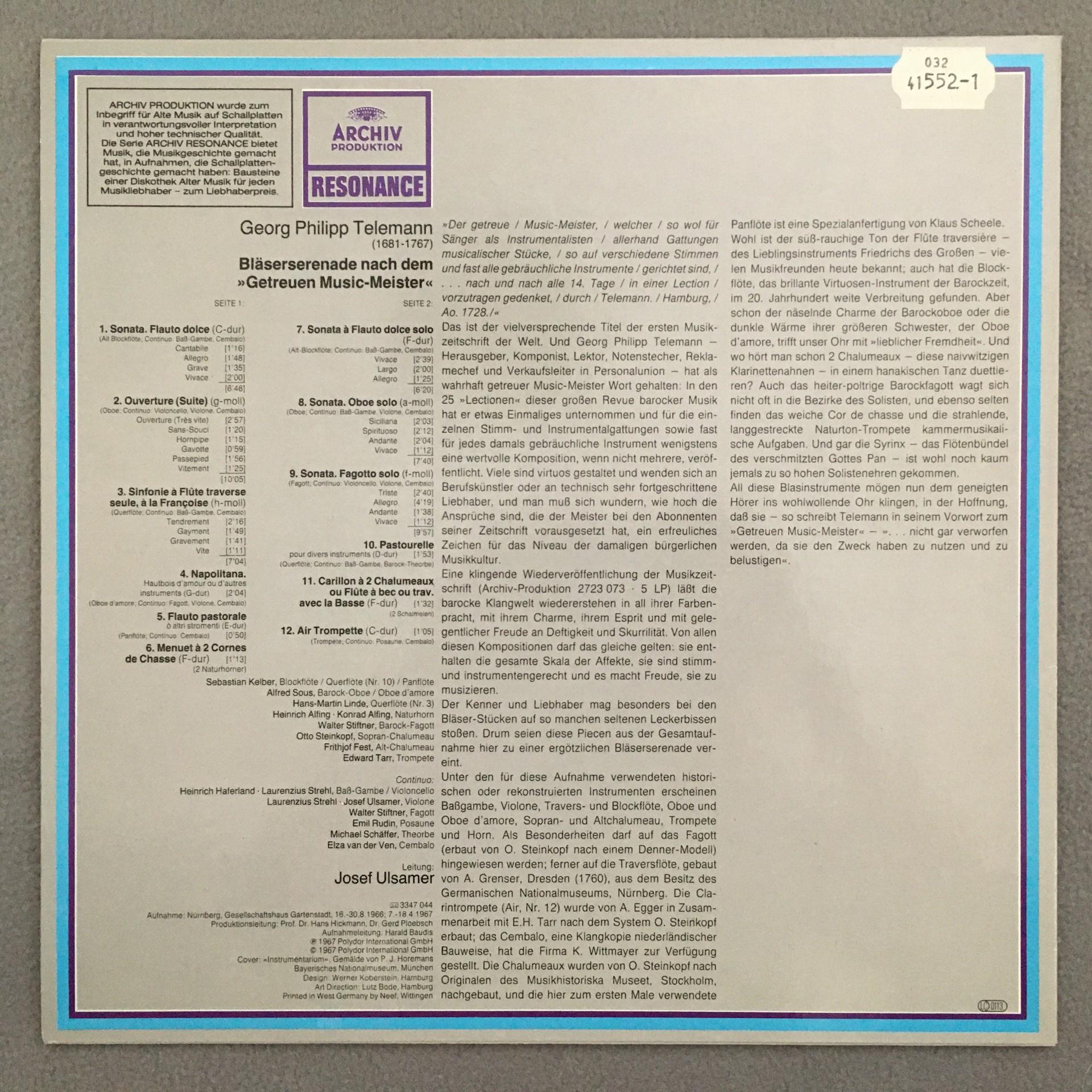 T807 Telemann Wind Serenade Kelber Ulsamer DGG Archiv 2547 044 Stereo