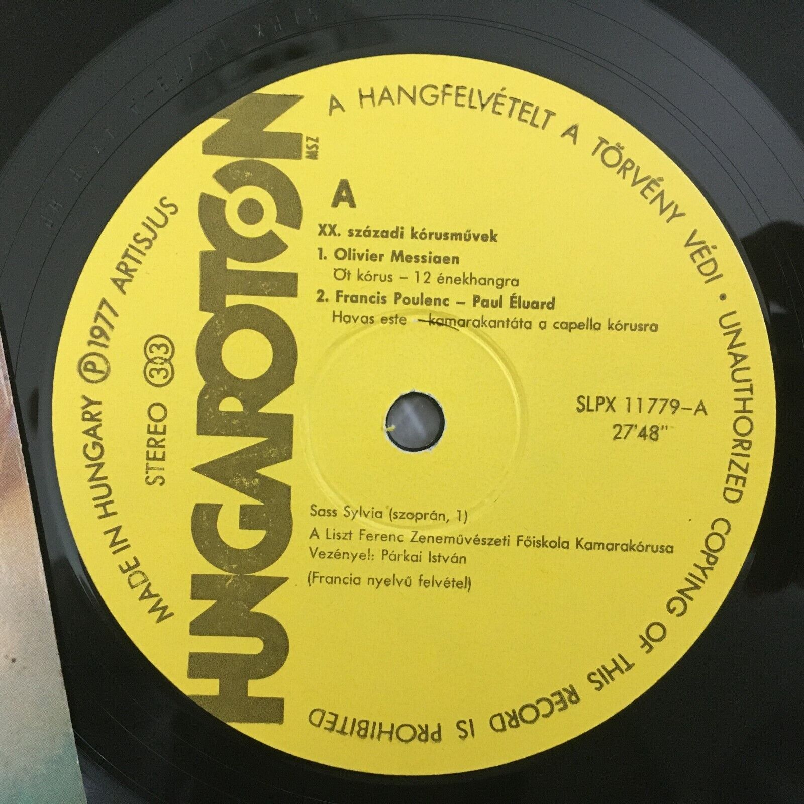 Z081 Messiaen Milhaud Hindemith Choral Music Parkai Hungaroton SLPX 11779 Stereo