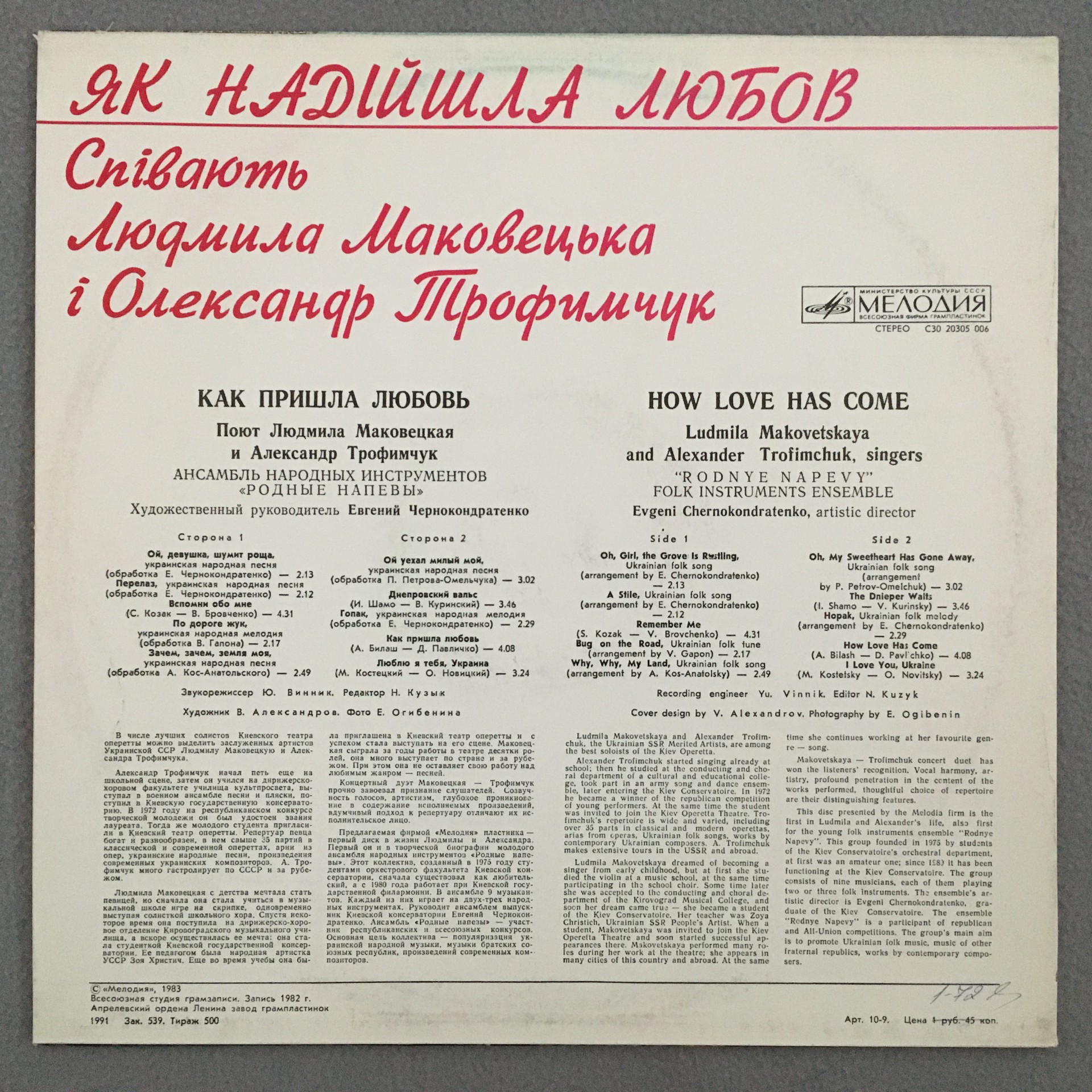 J536 How Love Has Come Makovetskaya Trofimchuk Melodiya C30 20305 006 Stereo