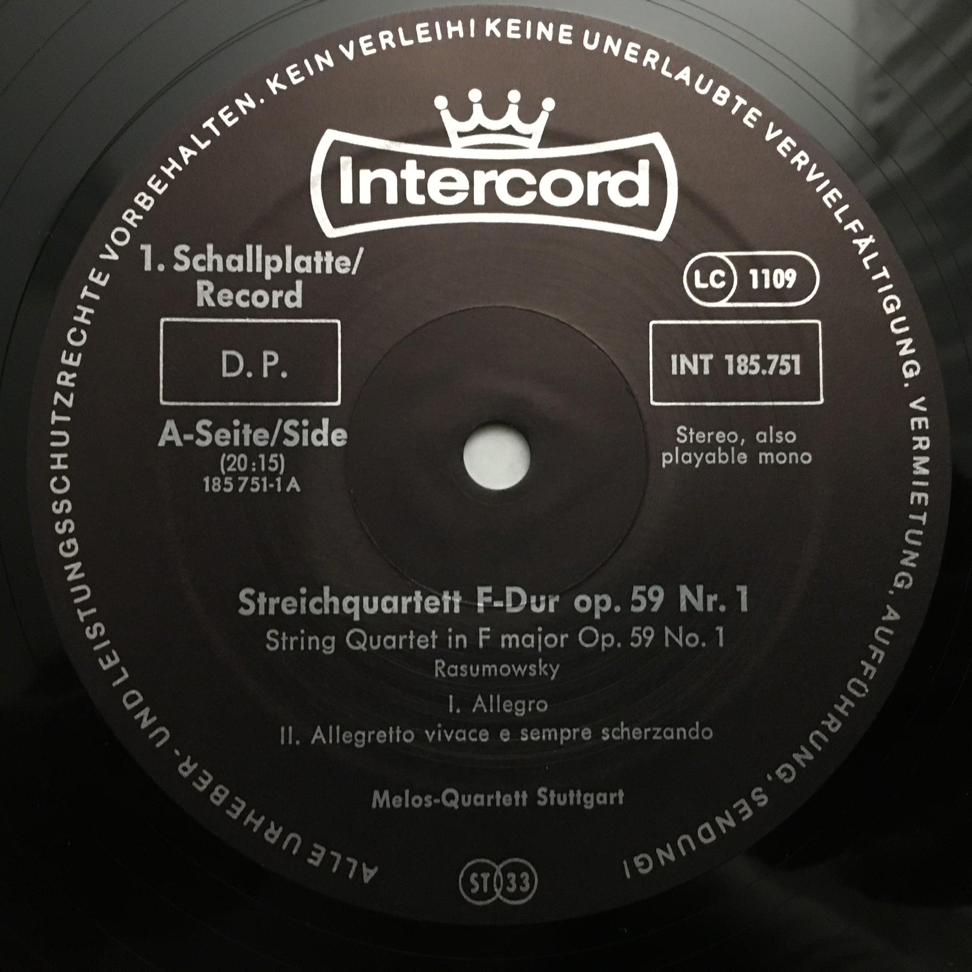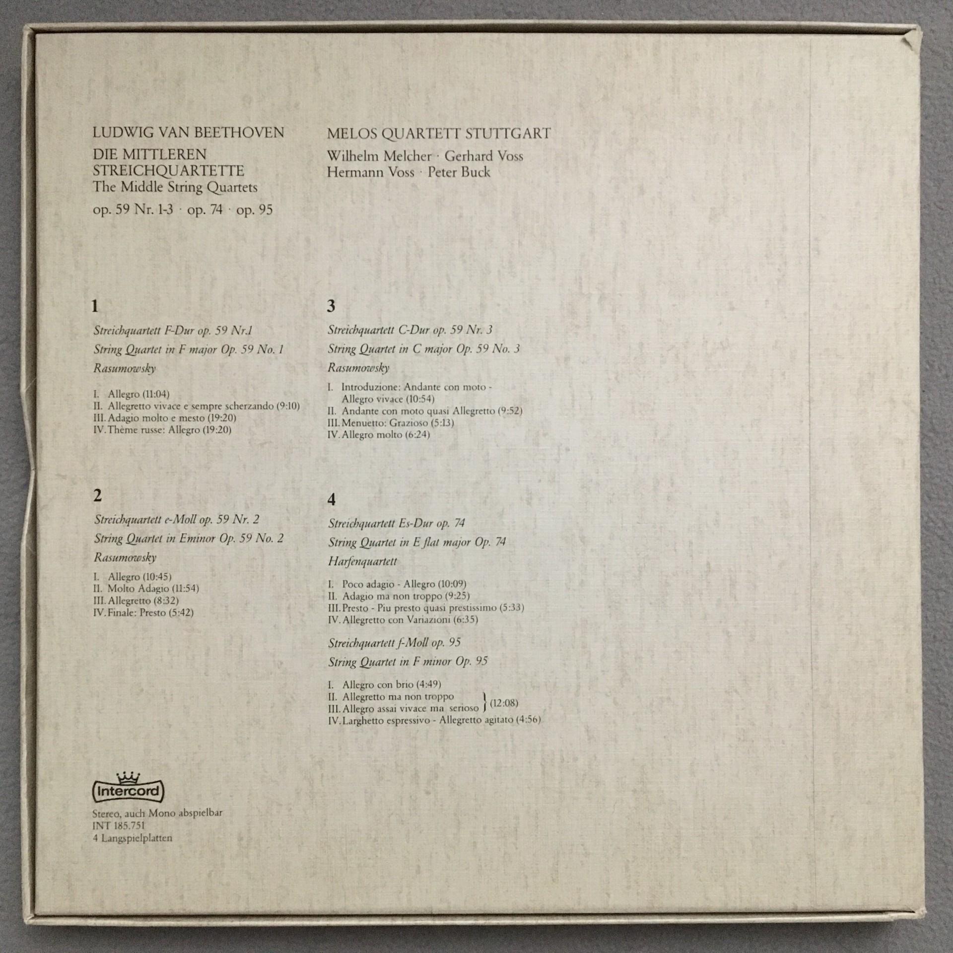 E406 Beethoven The Middle String Quartets Melos 4LP Intercord INT 185.751 Stereo