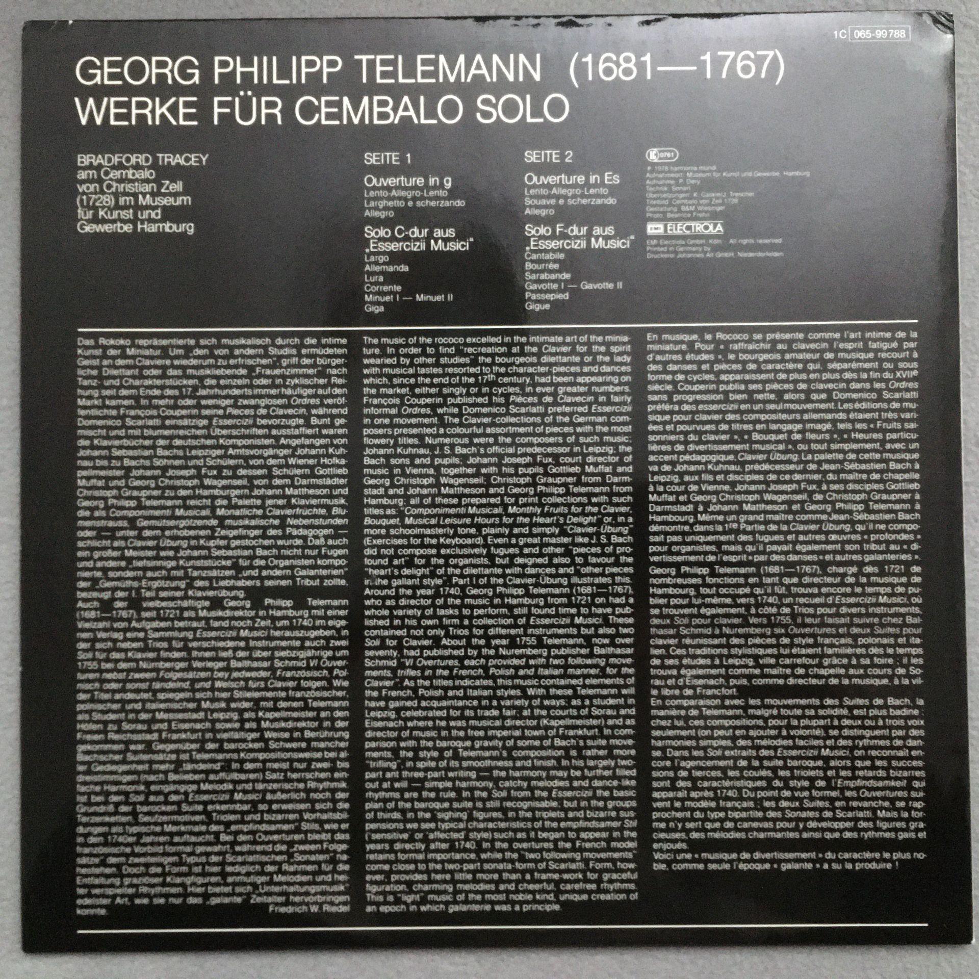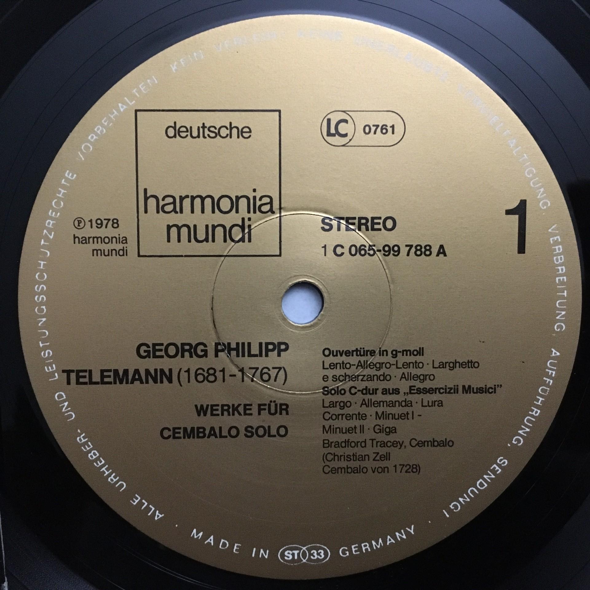 T810 Telemann Works for Harpsichord Solo Tracey Zell HM 1C 065-99 788 Stereo