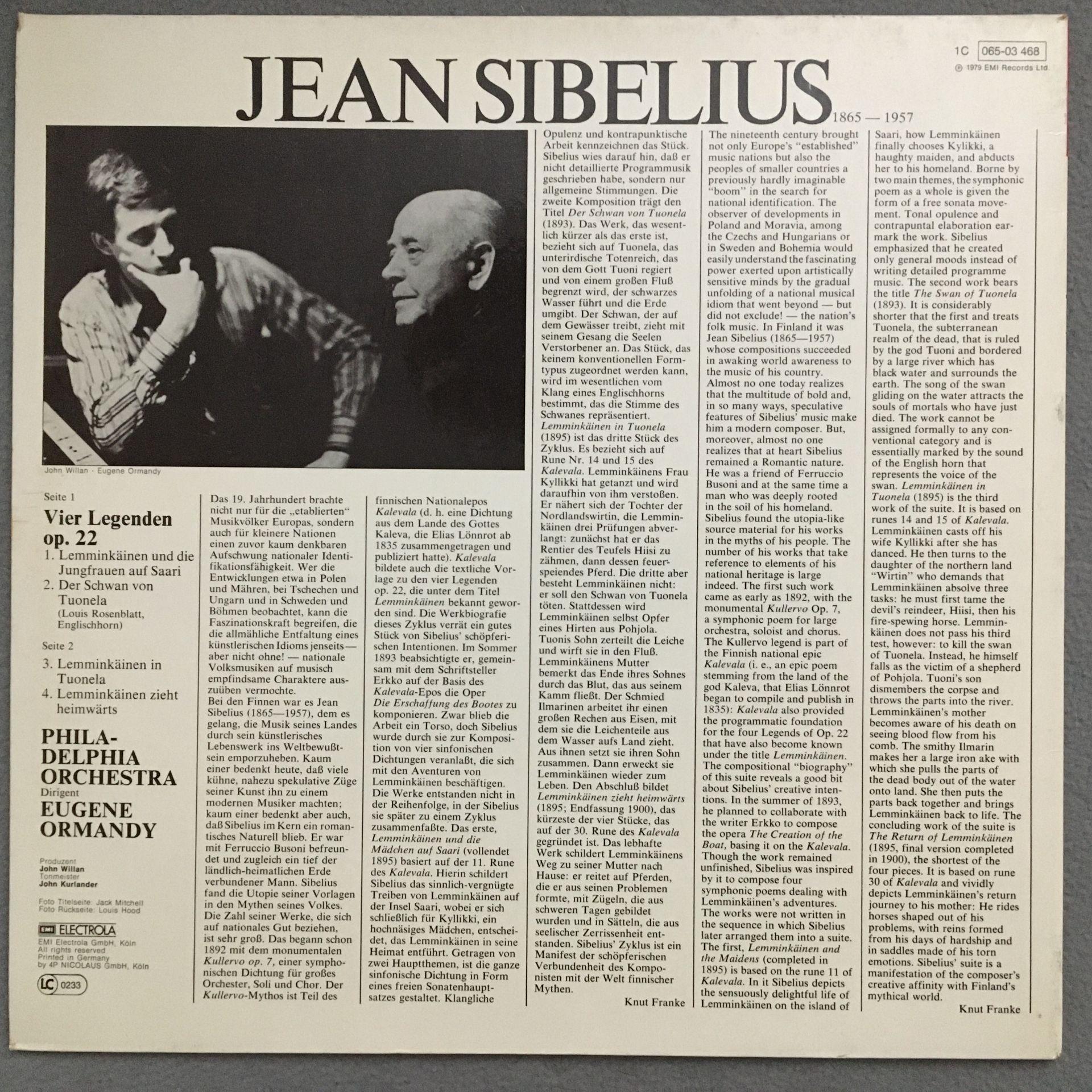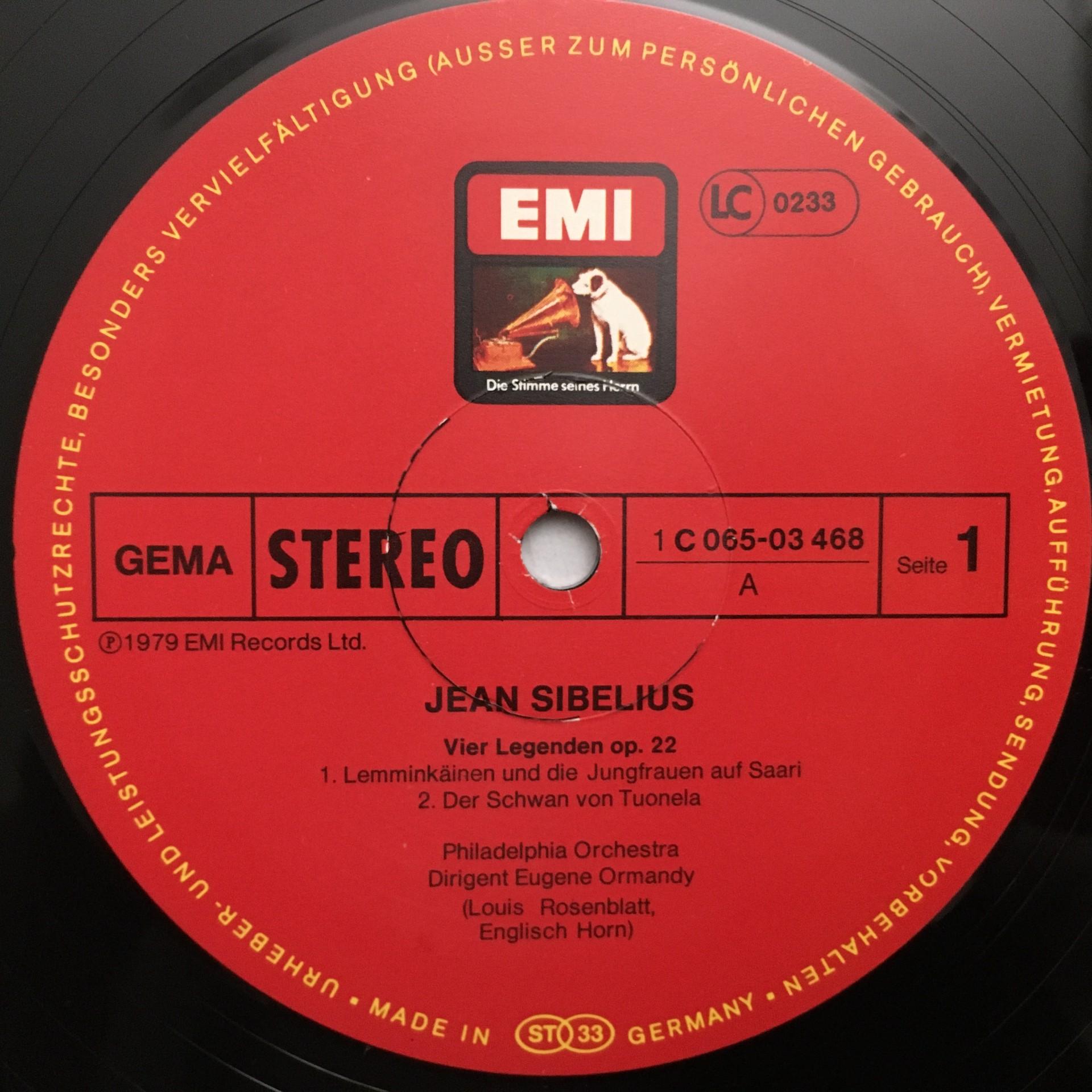 T815 Sibelius 4 Legends op.22 Ormandy EMI 1C 065-03 468 Stereo