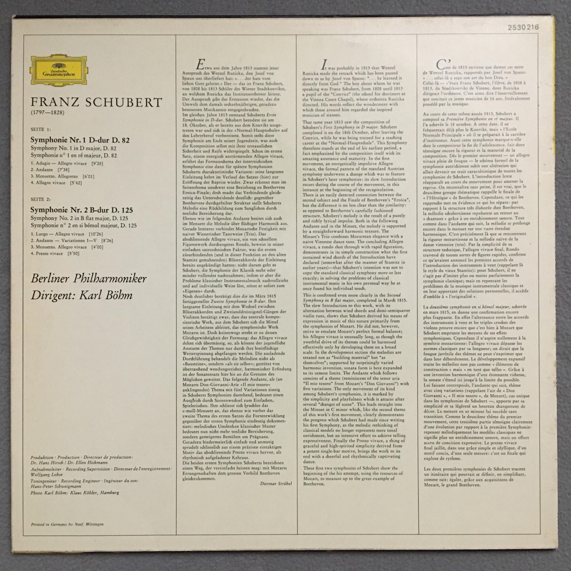 T816 Schubert Symphonies No.1 & No.2 Bohm BPO DGG 2530 216 Stereo
