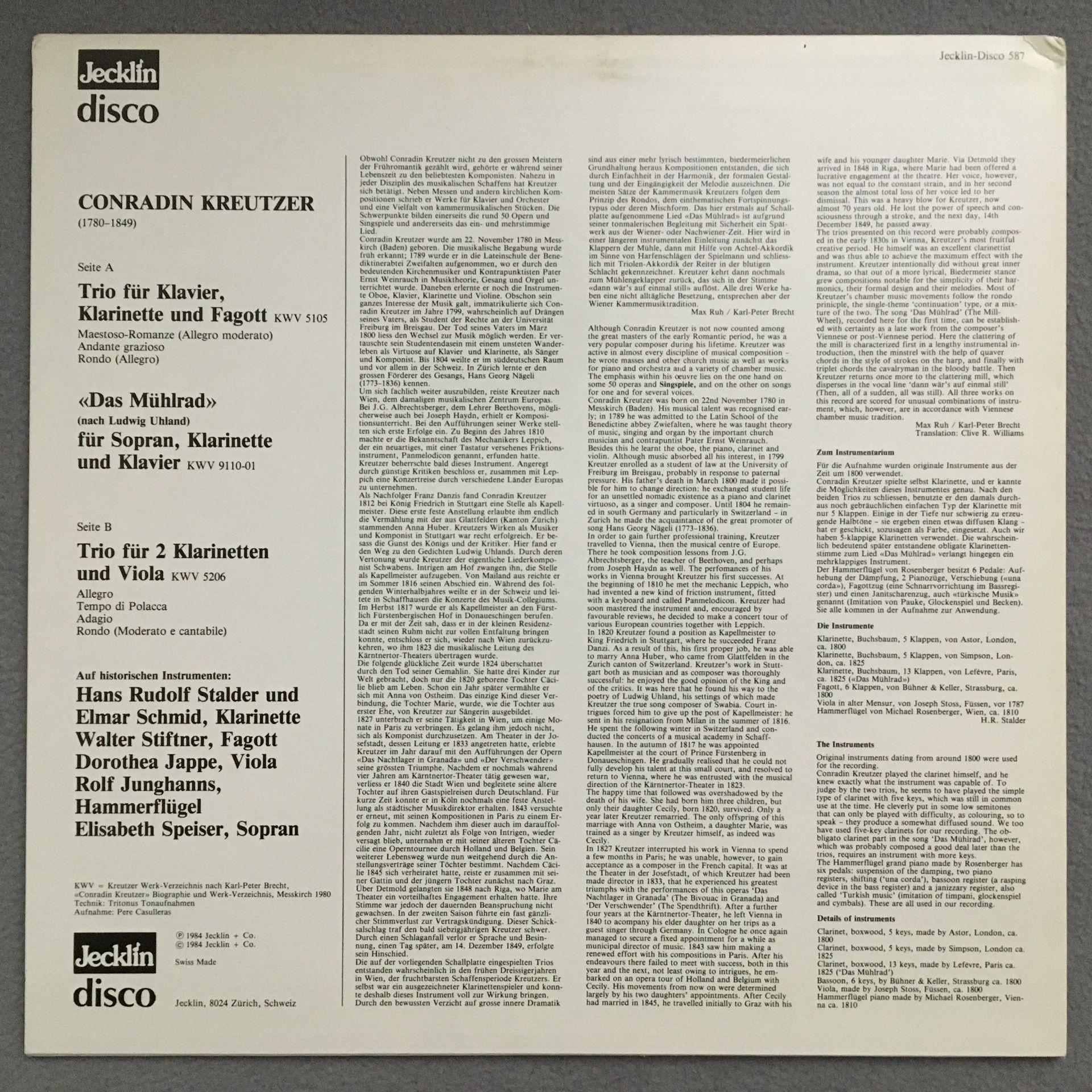 T819 Kreutzer Piano Trio Clarinet Trio Junghanns Schmid Jecklin-Disco 587 Stereo