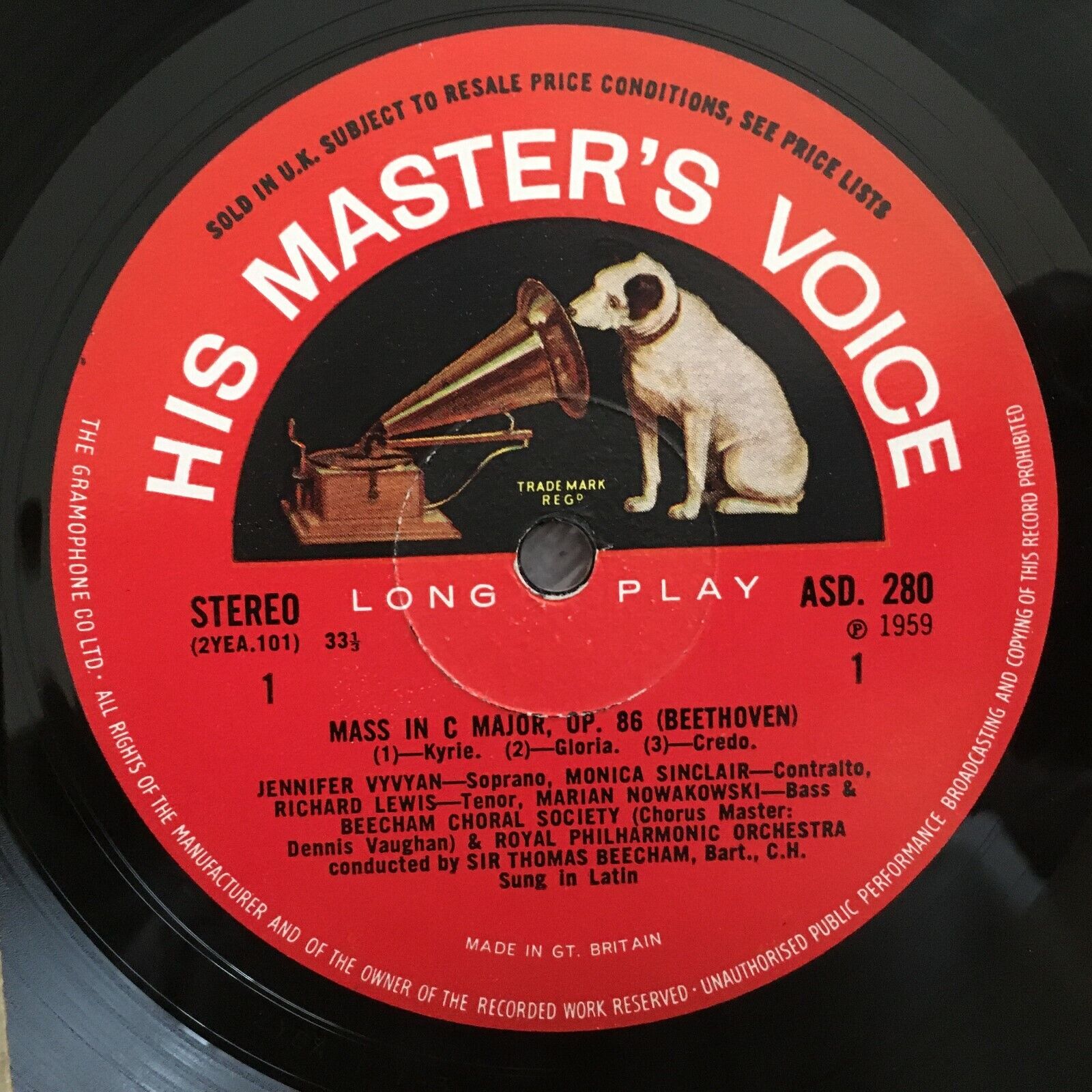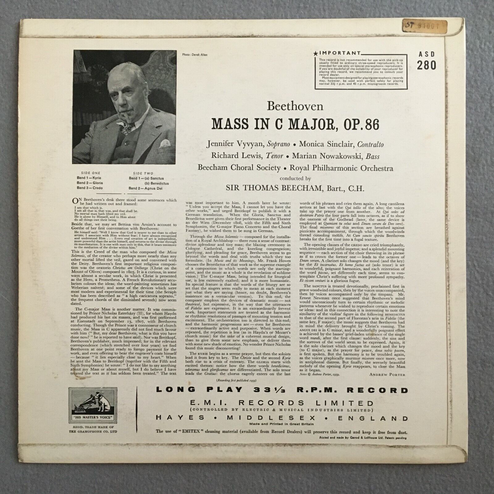 Z898 Beethoven Mass Vyvyan Sinclair Lewis Beecham HMV EMI ASD 280 Stereo