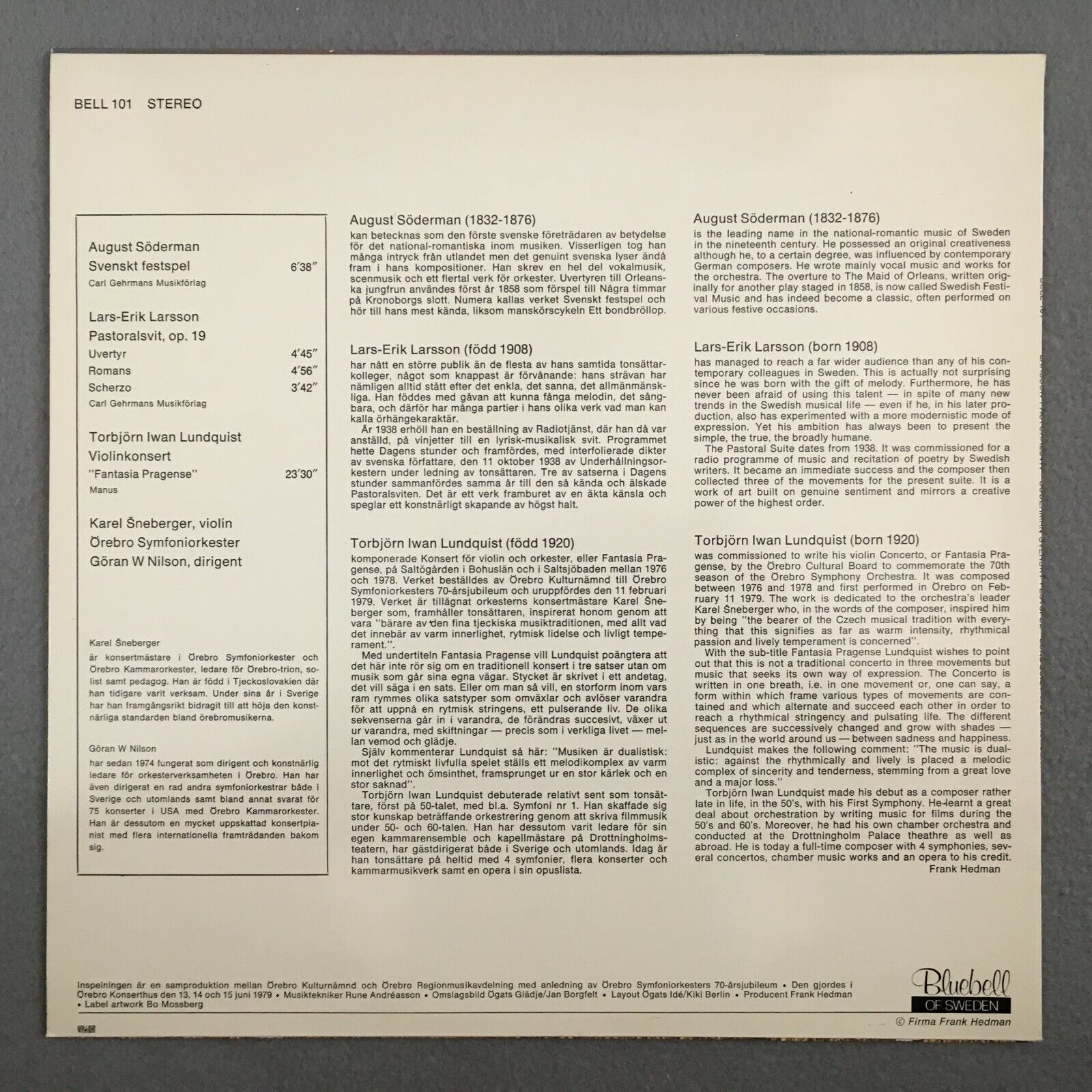 Z970 Larsson Pastoralsvit Op.19 Nilson Bluebell of Sewden BELL 101 Stereo