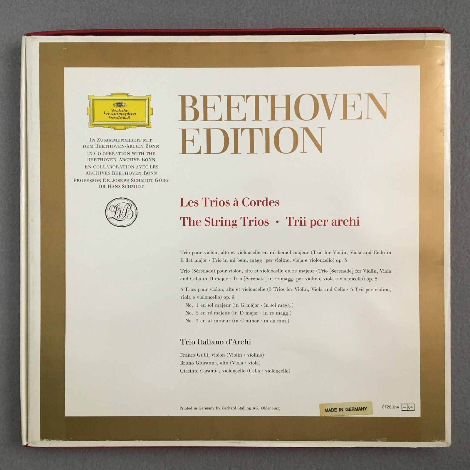 B580 Beethoven Edition Vol. 5 String Trios Gulli Caramia 3LP DGG 2720 014 Stereo