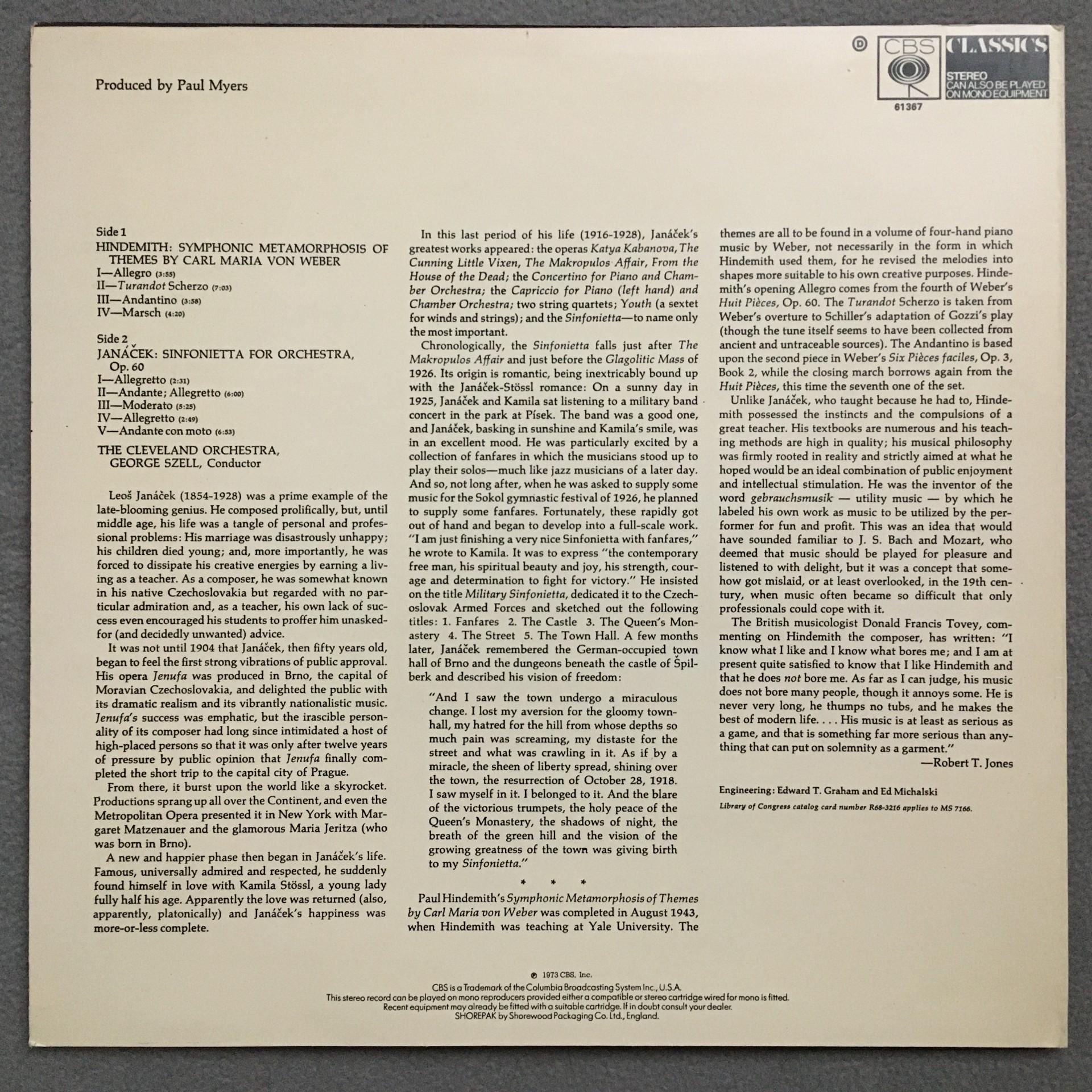 T828 Janacek Sinfonietta Hindemith Szell Columbia MS 7166 Stereo 2-Eye