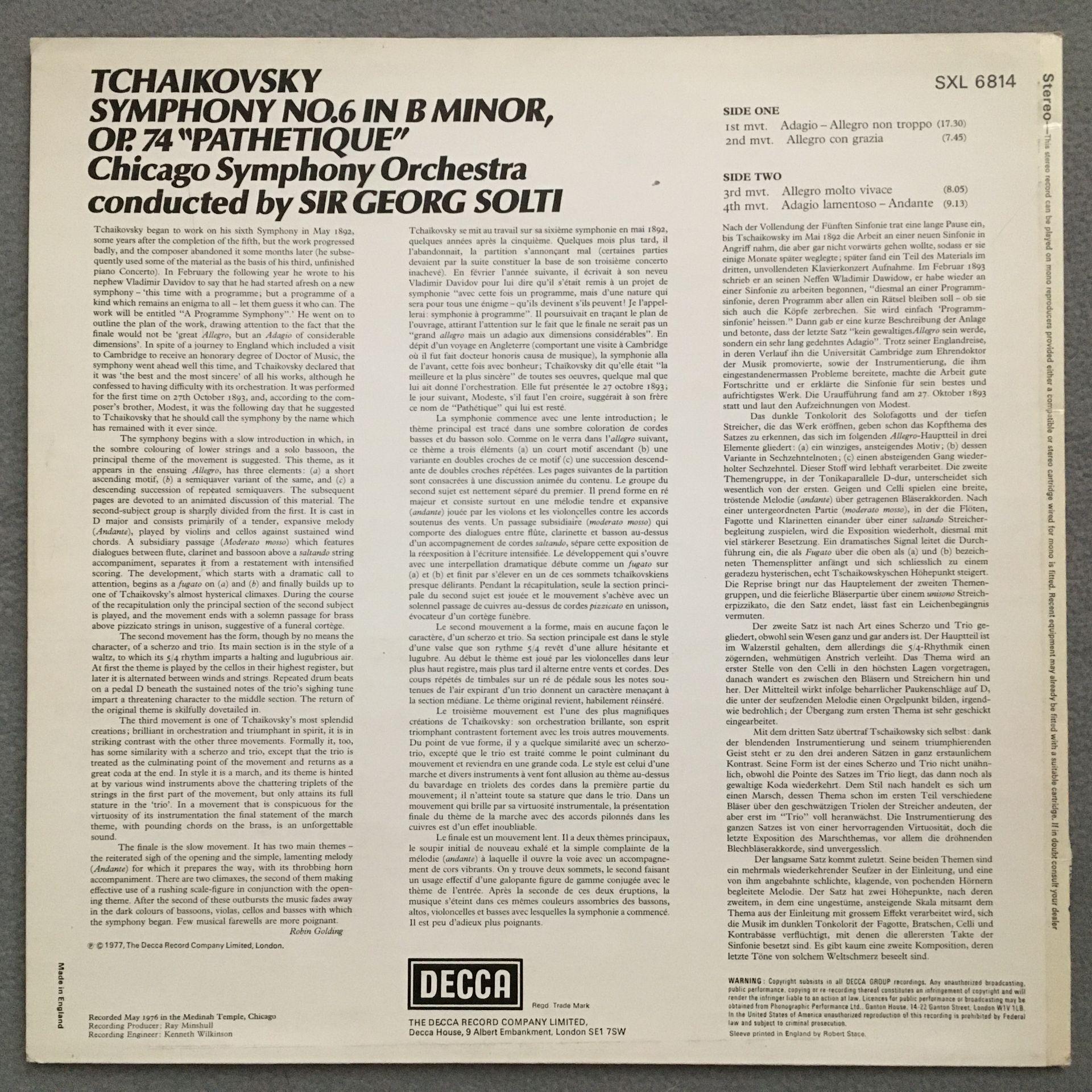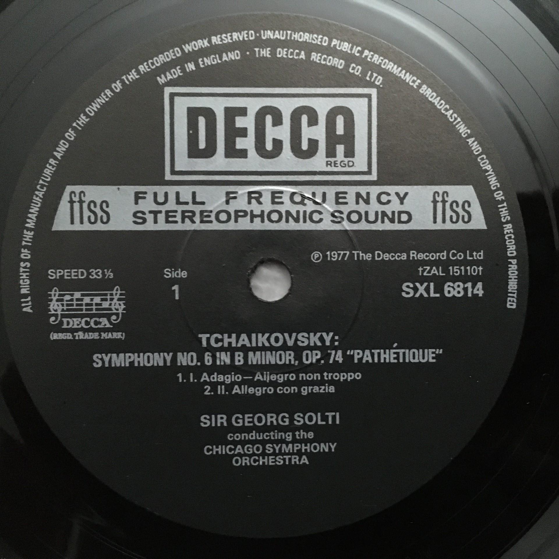 T832 Tchaikovsky Symphony No.6 Solti DECCA SXL 6814 Stereo