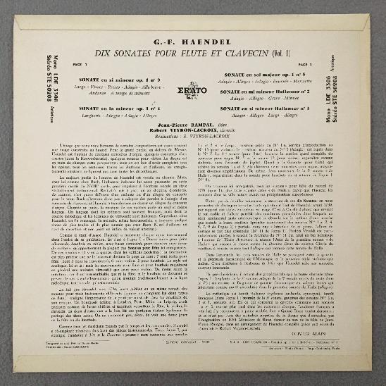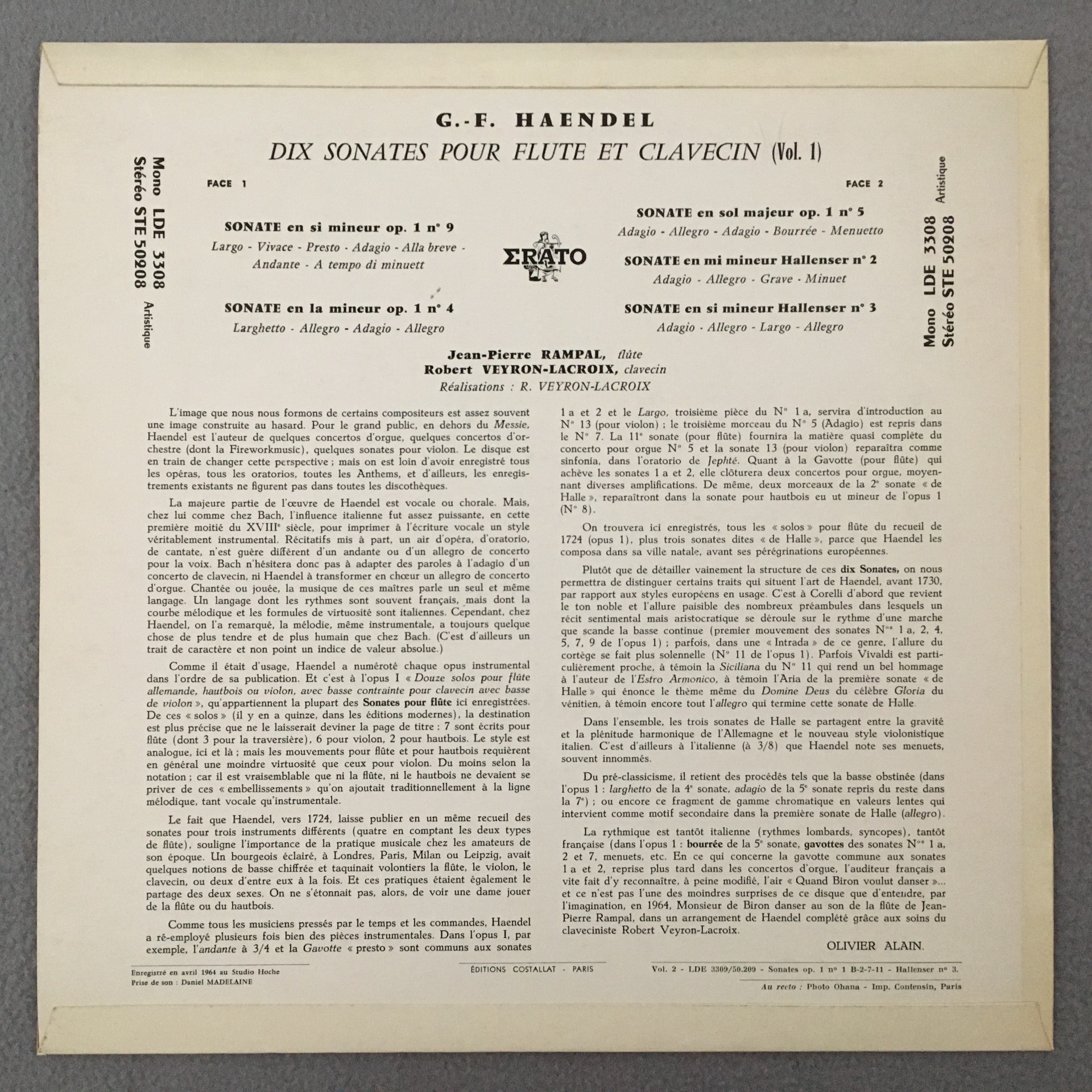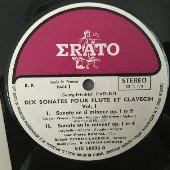 J539 Handel Flute & Piano Sonatas Rampal Veyeon-Lacroix Erato LDE 3308 Stereo