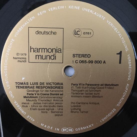 J543 Victoria Chants for Holy Week Partridge Turner HM 1C 065-99 800 Stereo