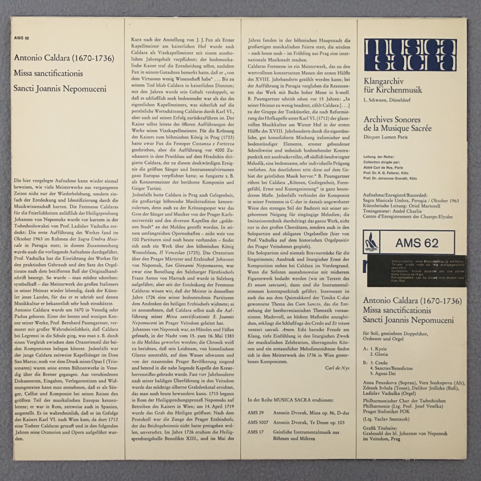 J545 Caldara Mass Penaskova Svhela Smetacek Musica Sacra AMS 62 Stereo