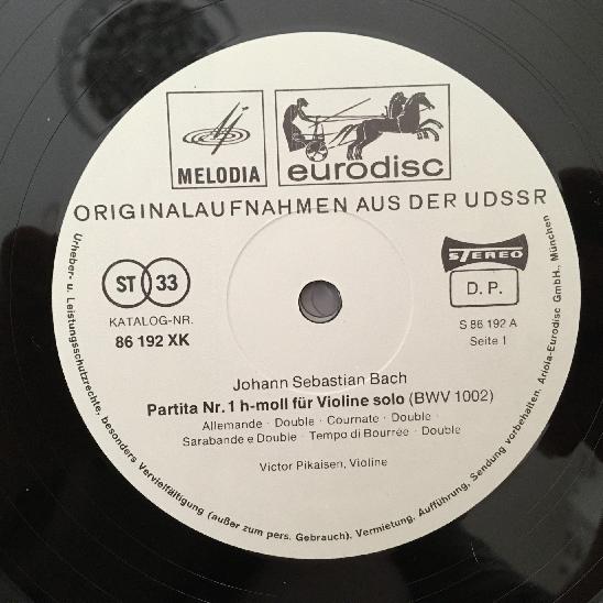 C759 Bach Sonatas & Partitas for Violin Solo Pikaisen 3LP Eurodisc 86 195 XK St