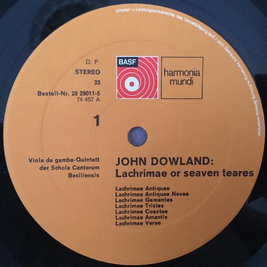 J547 Dowland Old English Gamba Music BASF HM 20 29011-5 Stereo