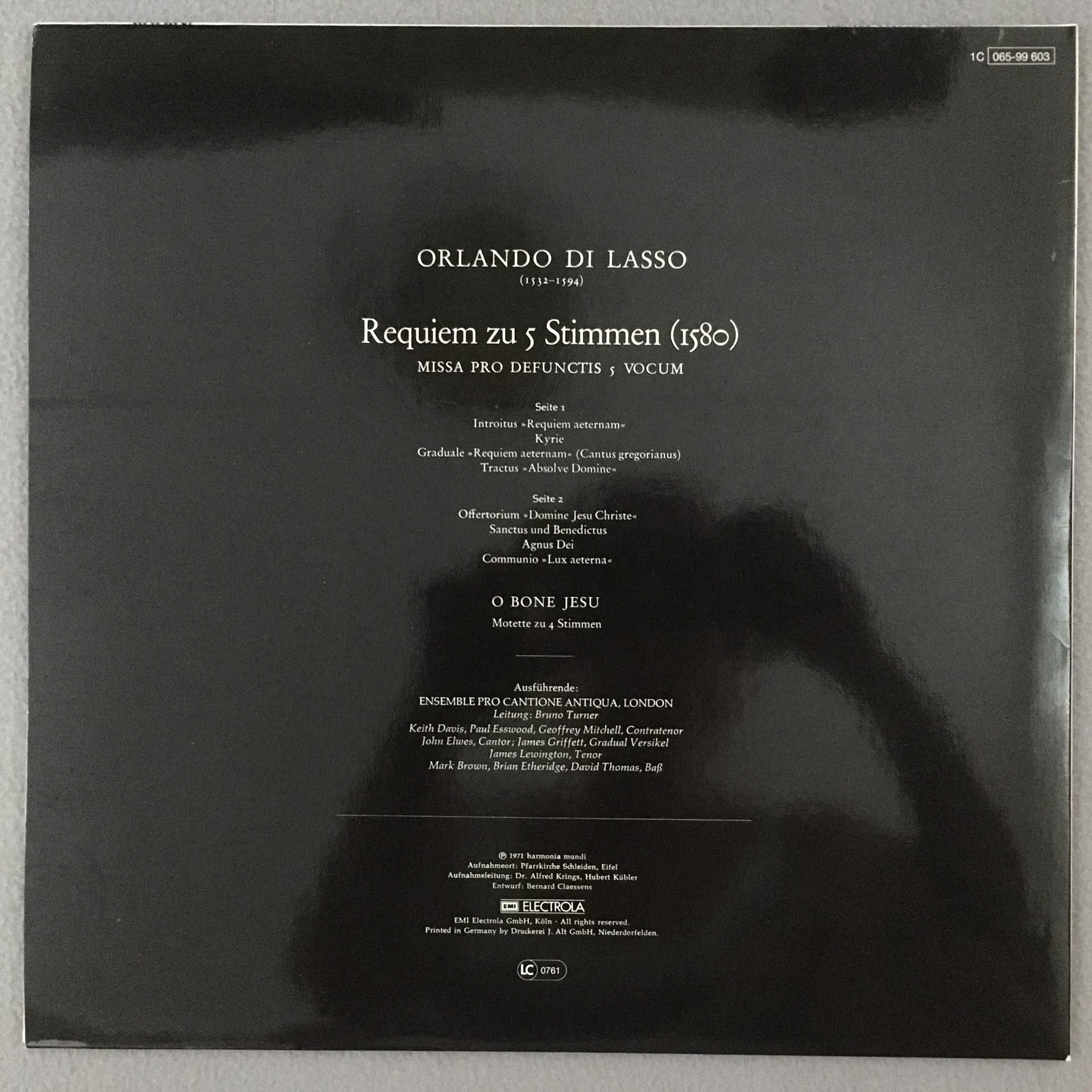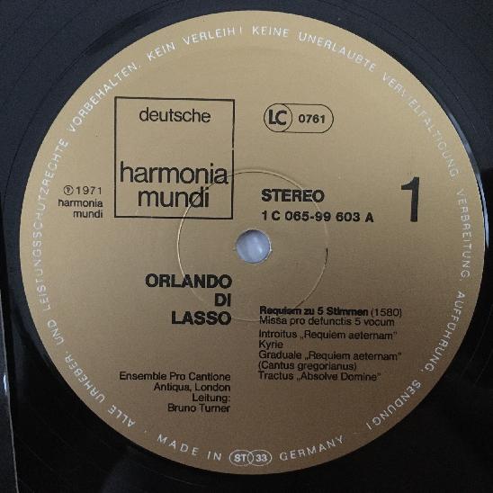 J557 Di Lasso Mass Esswood Turner Harmonia Mundi 1C 065-99 603 Stereo