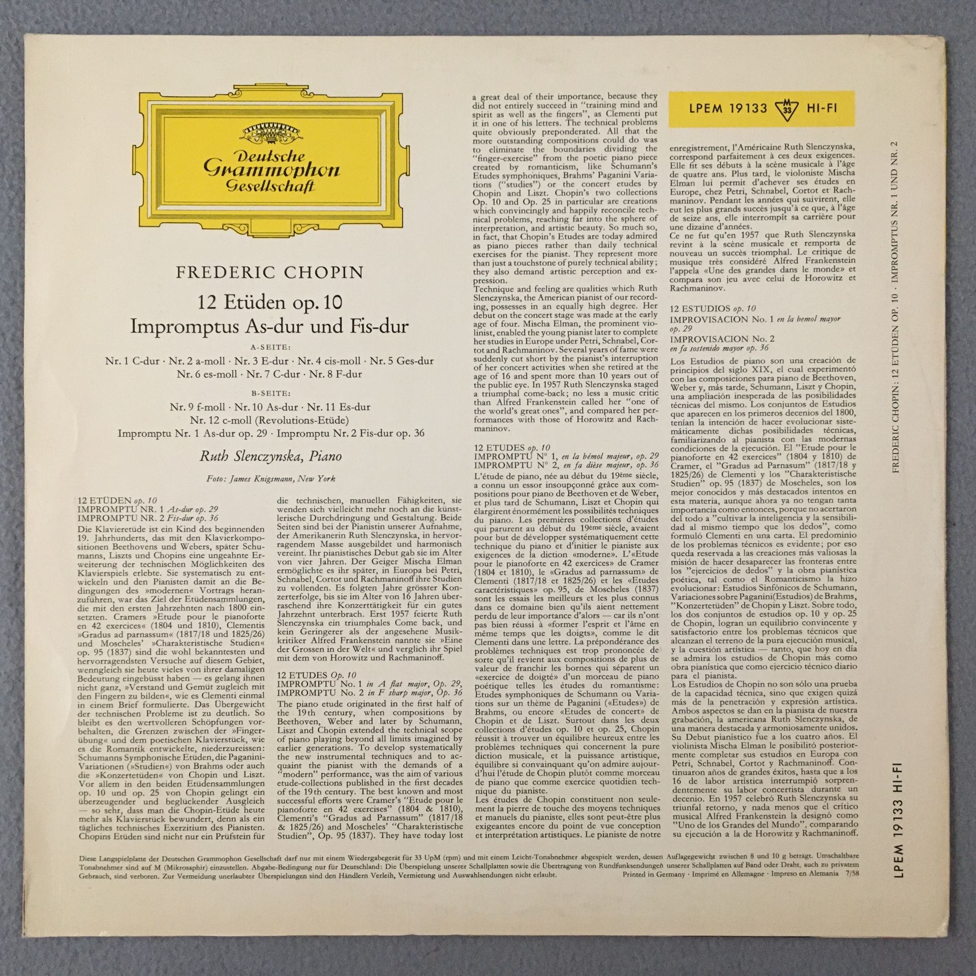 J561 Chopin 12 Etudes Op. 10 Slenczynska Piano DGG LPEM 19 133 Tulip